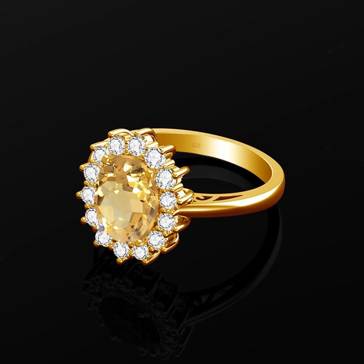 Женское кольцо Szjinao из чистого серебра 925 пробы с позолоченным желтым цитрином 5 карат 9*11 мм, обручальное кольцо с камнем, модные блестящие ювелирные украшения для женщин