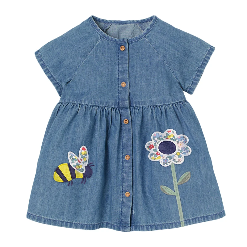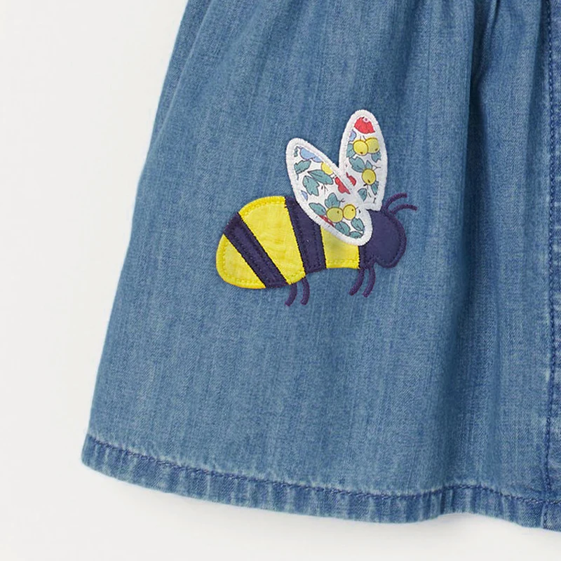 Летнее джинсовое платье с цветами и пчелами, на возраст от 2 до 7 лет