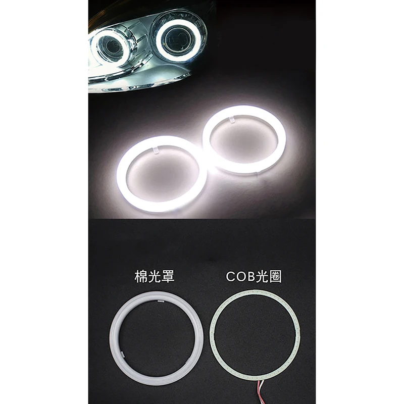 1 шт., DC 12 В, пластиковый белый COB SMD ангельские глазки, Автомобильный светодиодный противотуманный светильник, кольцо, DRL головной светильник, украшение лампы 60 мм/70 мм/80 мм/90 мм/100 мм