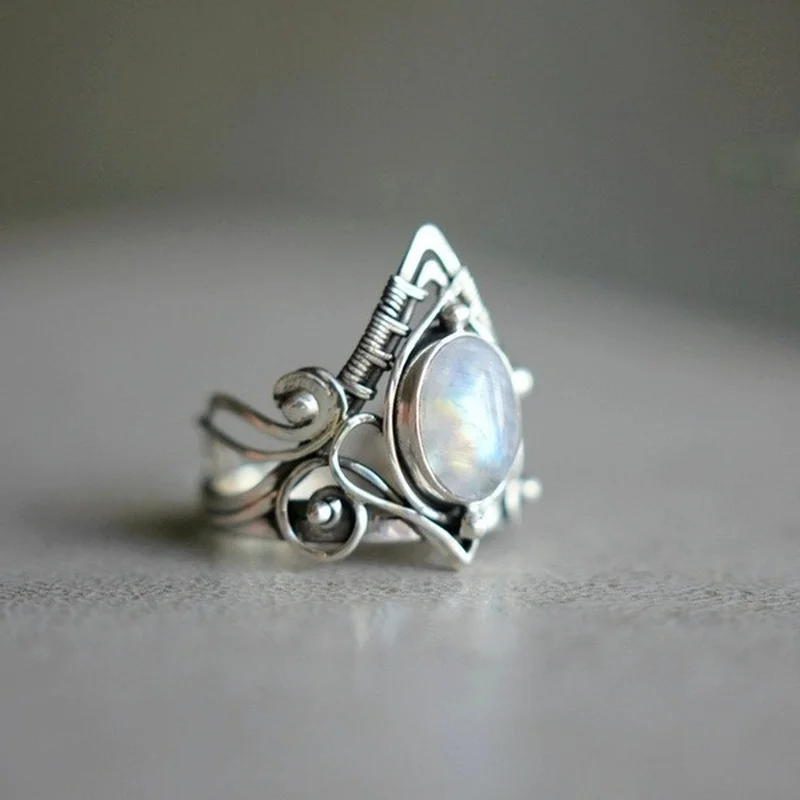 Винтажные антикварные кольца с лунным камнем, большие лечебные Кристальные кольца для женщин, тибетское индийское кольцо с лунным камнем, изысканные ювелирные изделия, подарки для дам