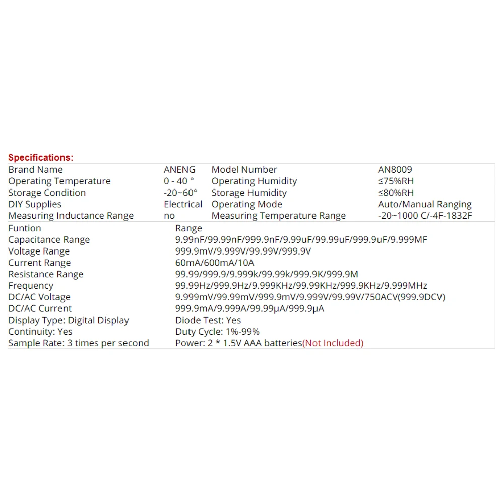Номер моделиAN8009 Digital Multimeter