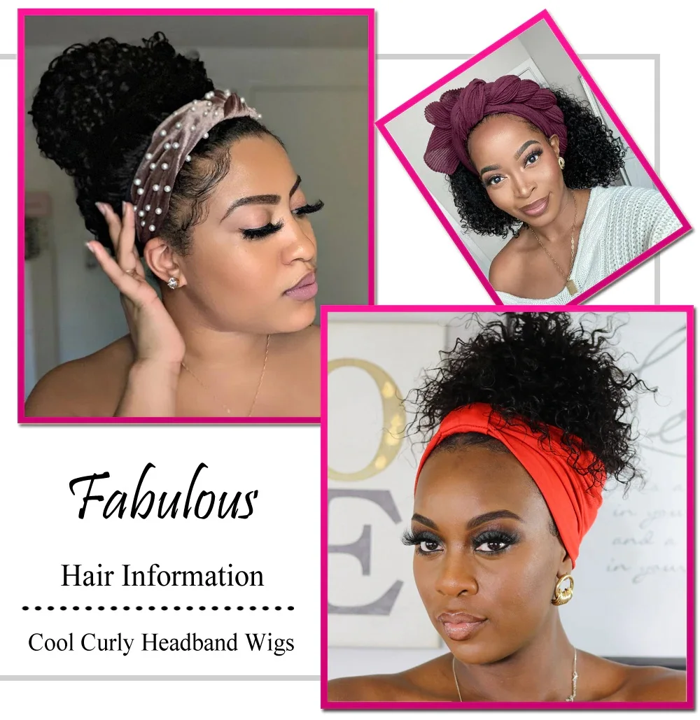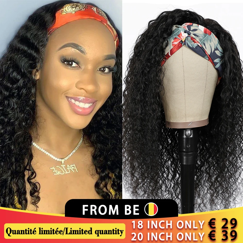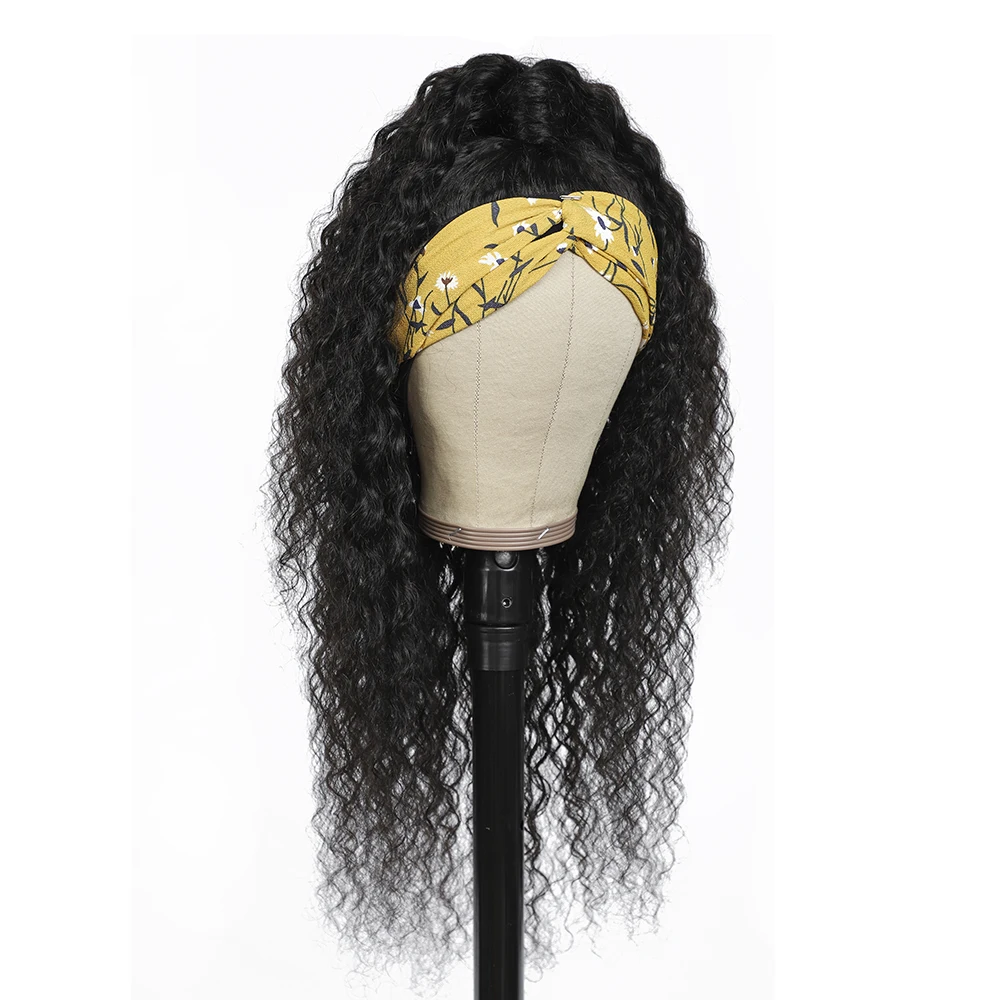Кудрявый парик с головной повязкой натуральный цвет 180% Remy кудрявые 100% настоящие человеческие волосы парики для черных женщин головная повязка парик для начинающих