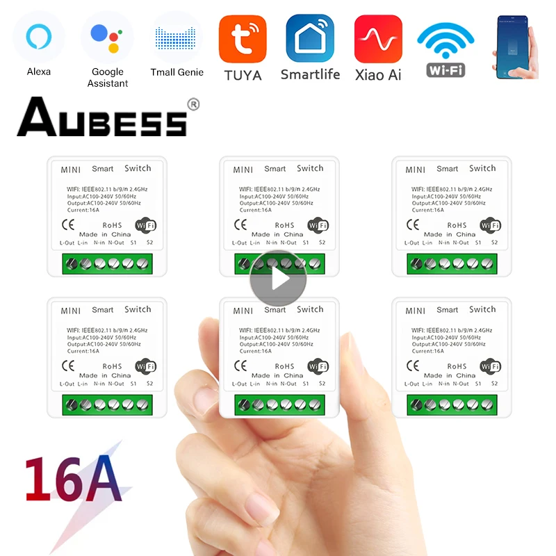 Умный мини-выключатель Aubess, 16 А, с поддержкой Wi-Fi