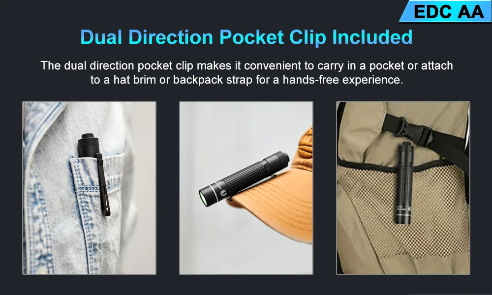 Опасения:Светодиодный нейтральный белый 4500k с сроком службы 50000 часовПитание от одного литий-ионного аккумулятора AA или 14500Четыре уровня выхода плюс стробоскоп с максимальной выходной мощностью 600 люменовСупер долгое время работы до 175 ЧАСОВ в низком режимеОптический Объектив TIR создает мягкий и сбалансированный лучЗащита от неправильной установки батареиПередний щелкающий задний переключатель для легкой и одноручной работыФункция памяти режима напоминает последний выход использования при включении в следующий разДвухпозиционный глубокий карманный зажим, легко носить с собой вездеРомбовидная резка обеспечивает защиту от скольженияИзготовлен из авиационного алюминиевого сплава, премиум-класса Тип III Жесткий анодированный анти-абразивная отделка, упрочненный и износостойкийРазмер: 91*17 мм. N.W. : 23,3 г (не включая аккумулятор)IP68 водонепроницаемый, погружной до 2 метров