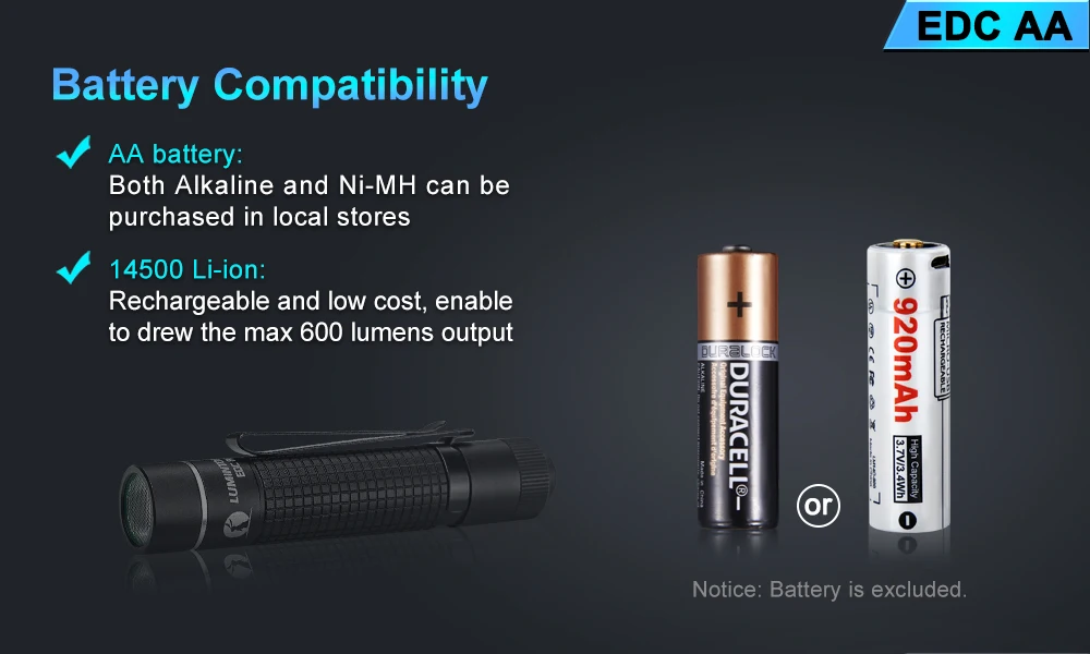 14500 фонарик Lumintop EDC AA 219ct светодиодный нейтральный белый светодиодный светильник льник 600 люмен 160 метров мини фонасветильник
