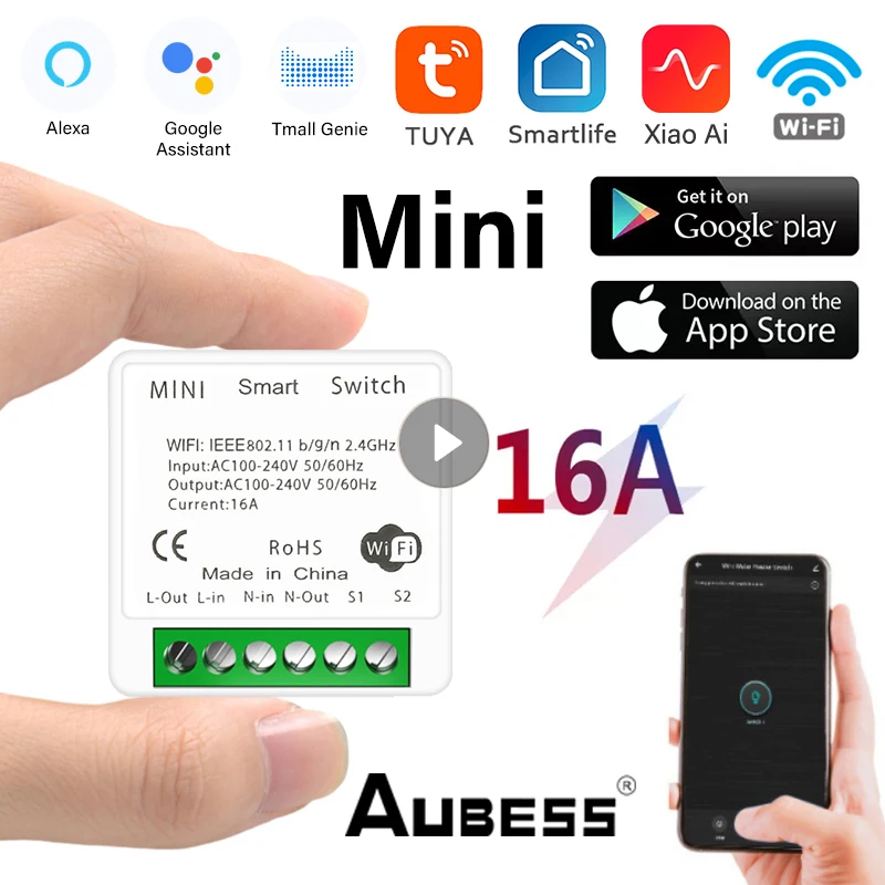 Умный мини-светильник ключатель Aubess 16 А с поддержкой Wi-Fi и таймера