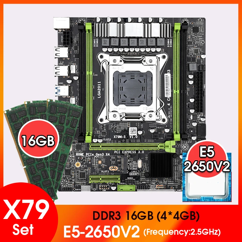 Комплект материнской платы X79 с процессором Xeon E5 2650 V2 LGA2011, 4 шт. X 4 ГБ = 16 ГБ, 1333 МГц, комплект памяти DDR3