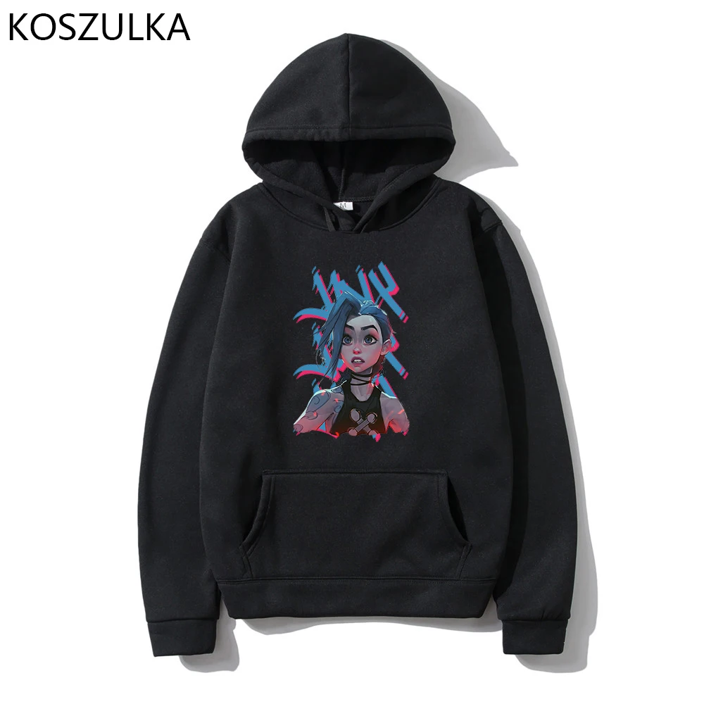 Толстовка с капюшоном в стиле Харадзюку, Свитшот в стиле хип-хоп Jinx, популярная зимняя одежда для мужчин и женщин с аниме для игр, Молодежная уличная одежда для любителей игр
