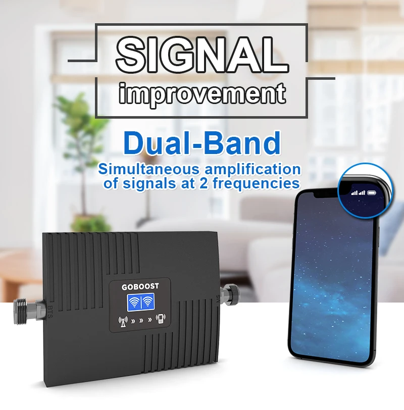 Двухдиапазонный усилитель сигнала GOBOOST 65 дБ 2G 3G 4G Сотовый усилитель 850 900 1700 1800 1900 2100 МГц сетевой ретранслятор 360 антенна
