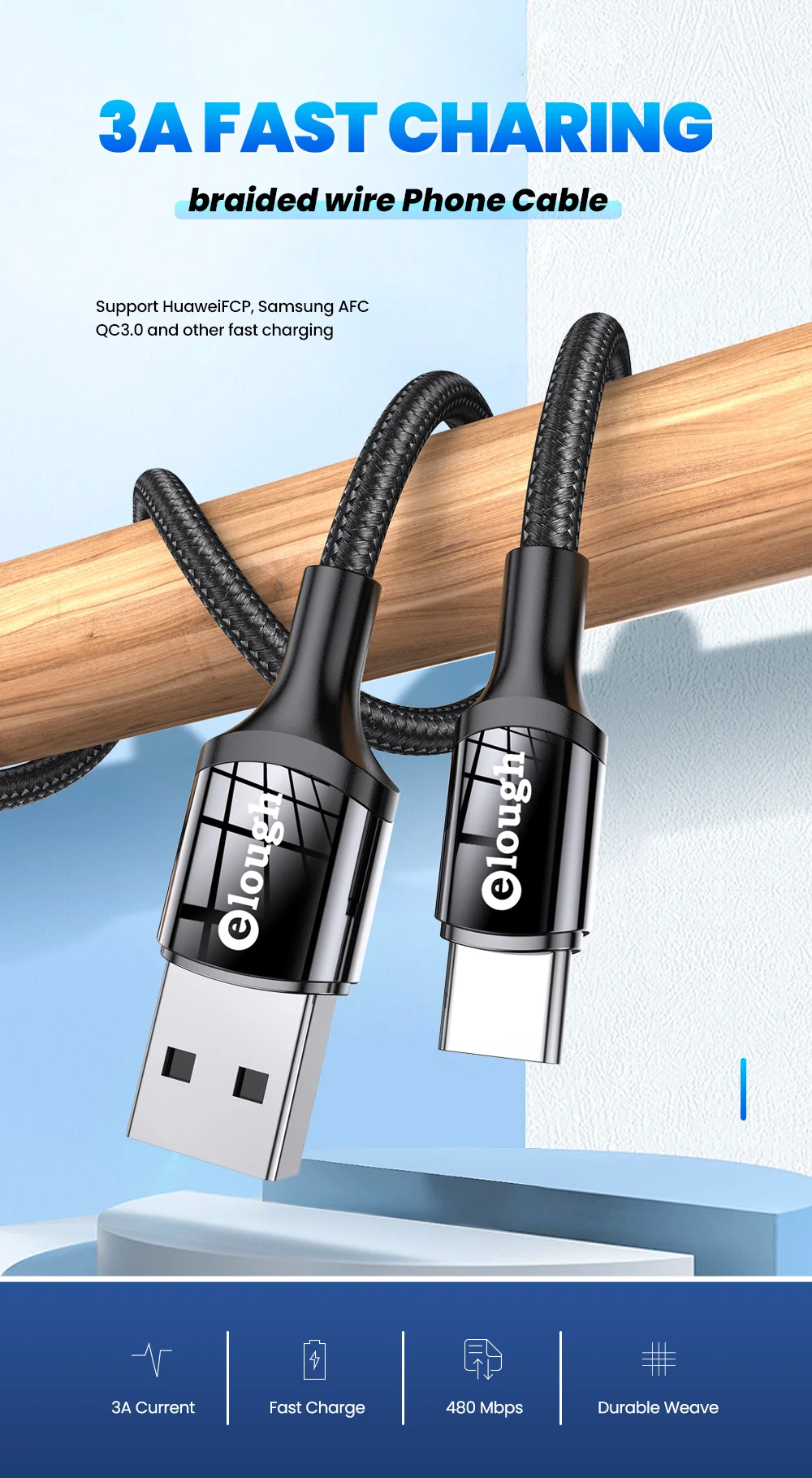 Кабель зарядный Elough USB Type-C, 3 а, с поддержкой быстрой зарядки