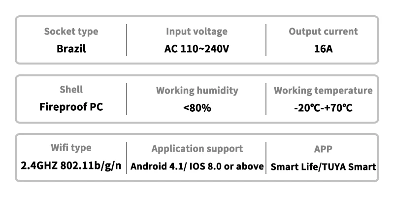 Бразильская смарт-розетка с Wi-Fi, 16 А, BR, адаптер питания с монитором питания, Беспроводная розетка для умного дома, работает с Google Home, Alexa Echo