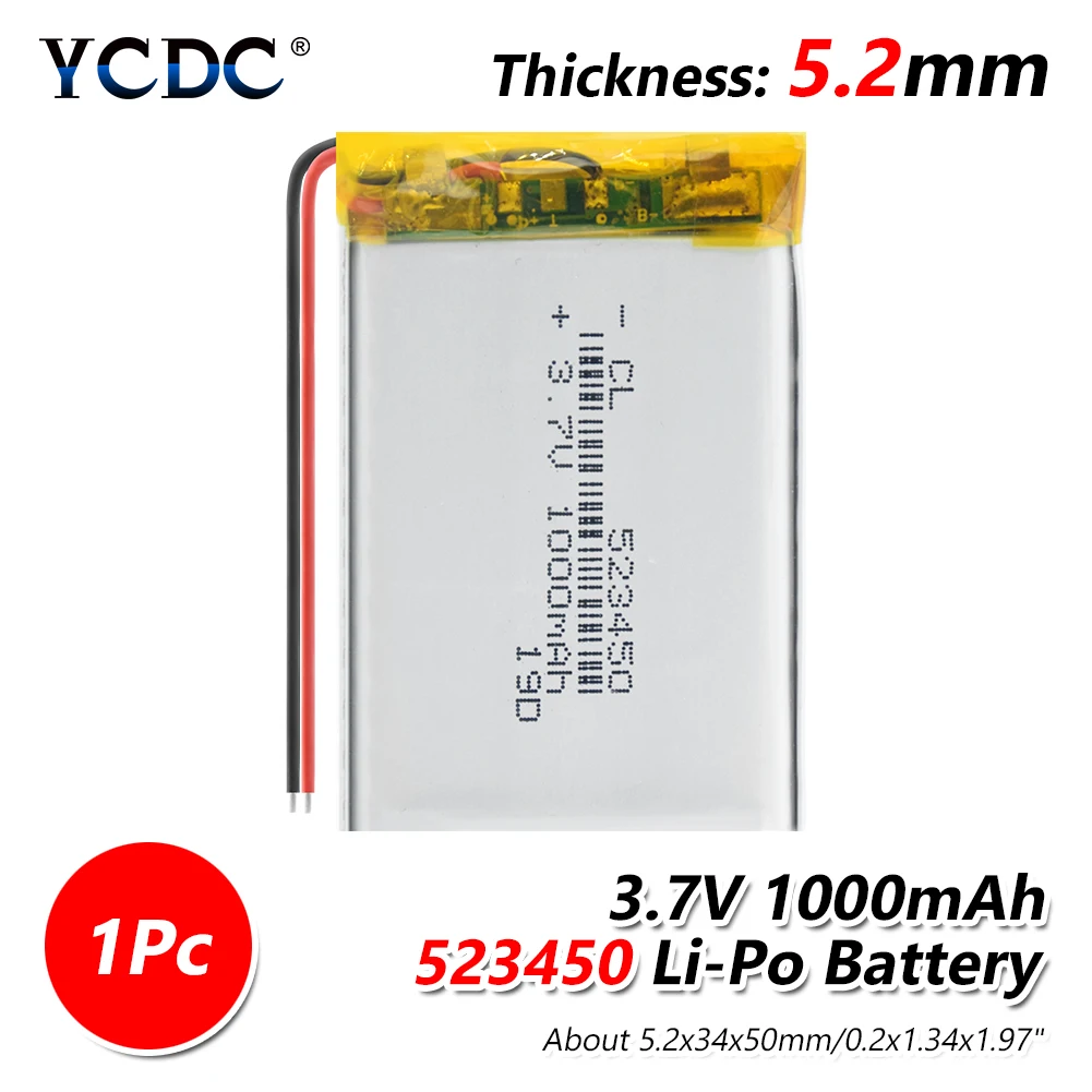 1/2/4 шт. Прочный 523450 1000mAh литий-полимерные батареи перезаряжаемые 3,7 V 1000mAh 523450 Lipo батарея для MP3 MP4 светодиодный светильник