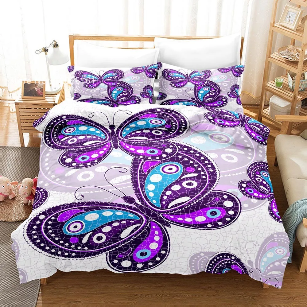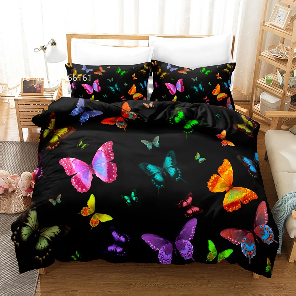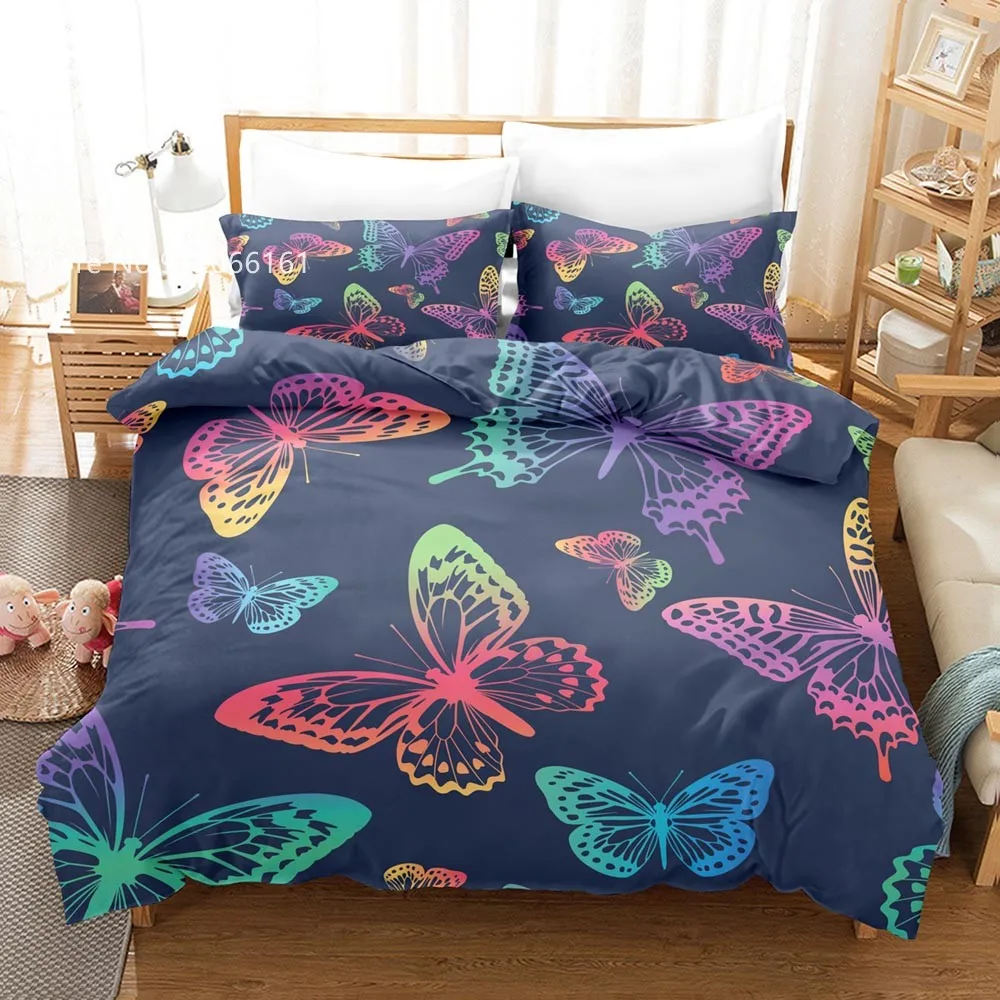 Комплект постельного белья из 23 предметов с красочными мультяшными бабочками, пододеяльник с 3D принтом красивых животных, удобное мягкое покрывало, наволочка