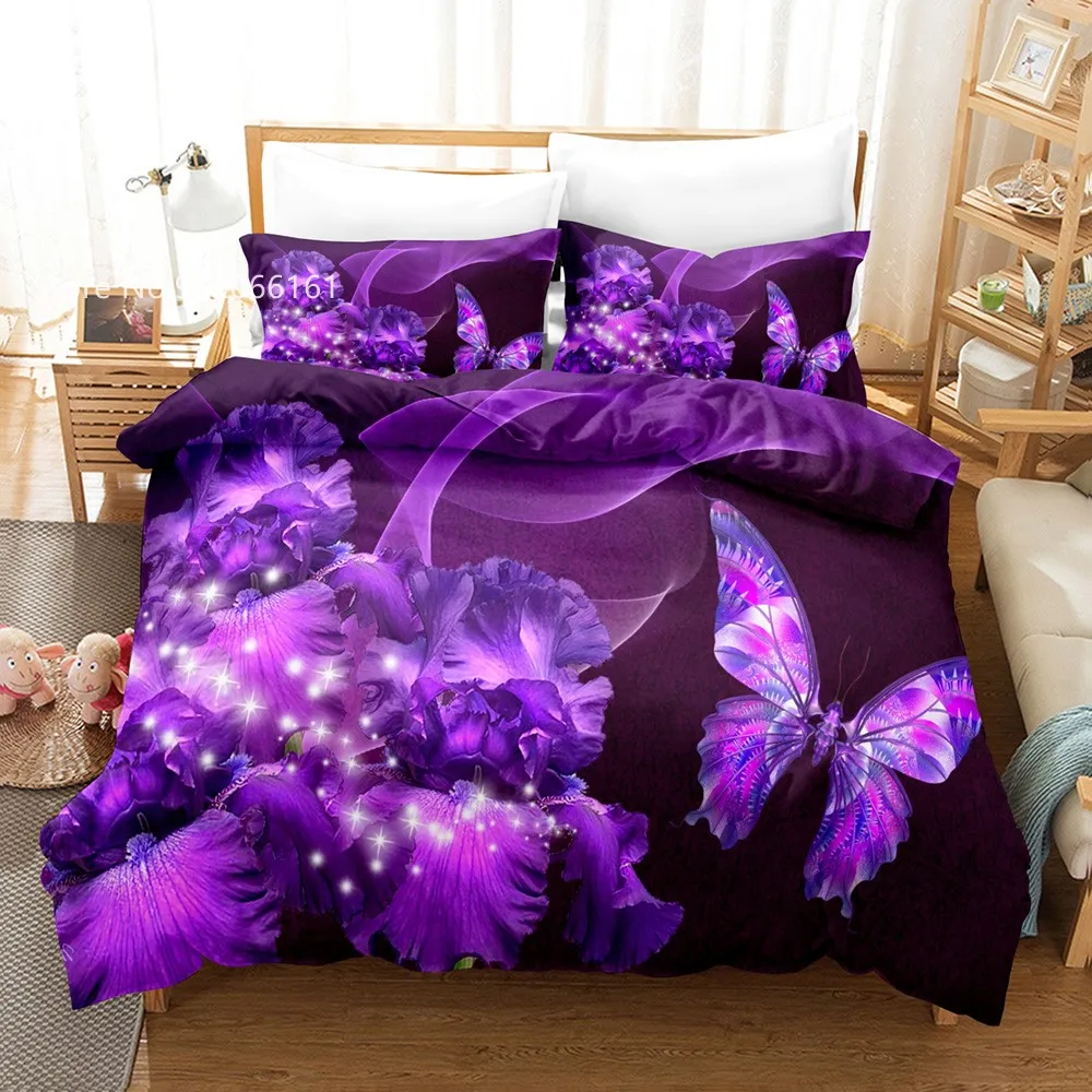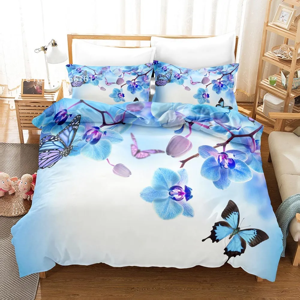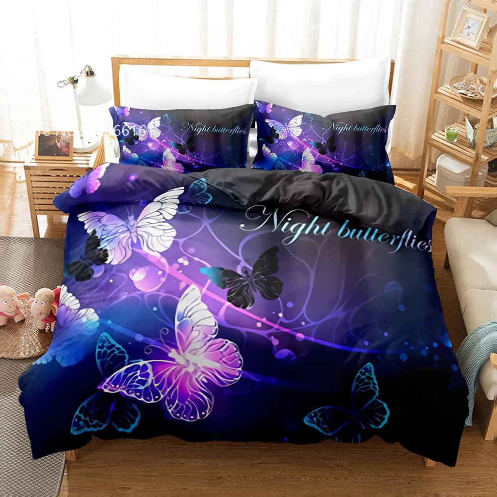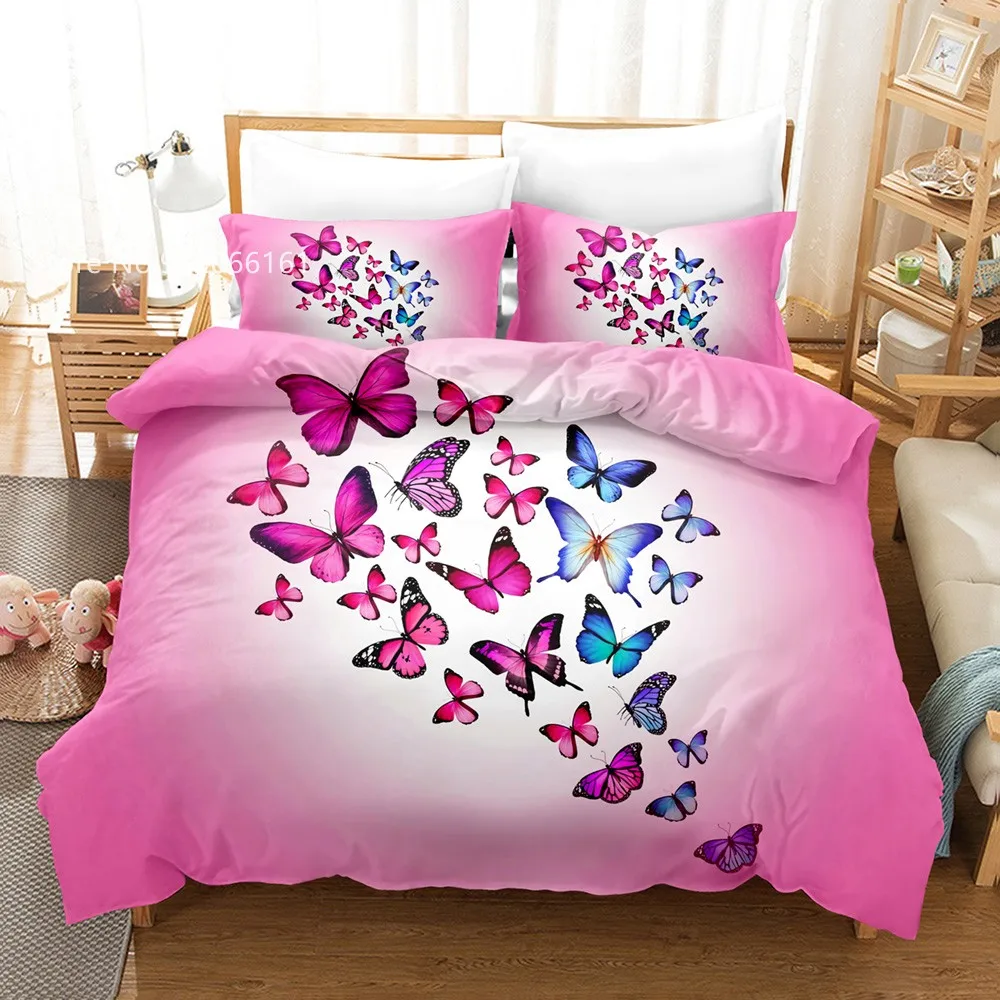 Комплект постельного белья из 23 предметов с красочными мультяшными бабочками, пододеяльник с 3D принтом красивых животных, удобное мягкое покрывало, наволочка