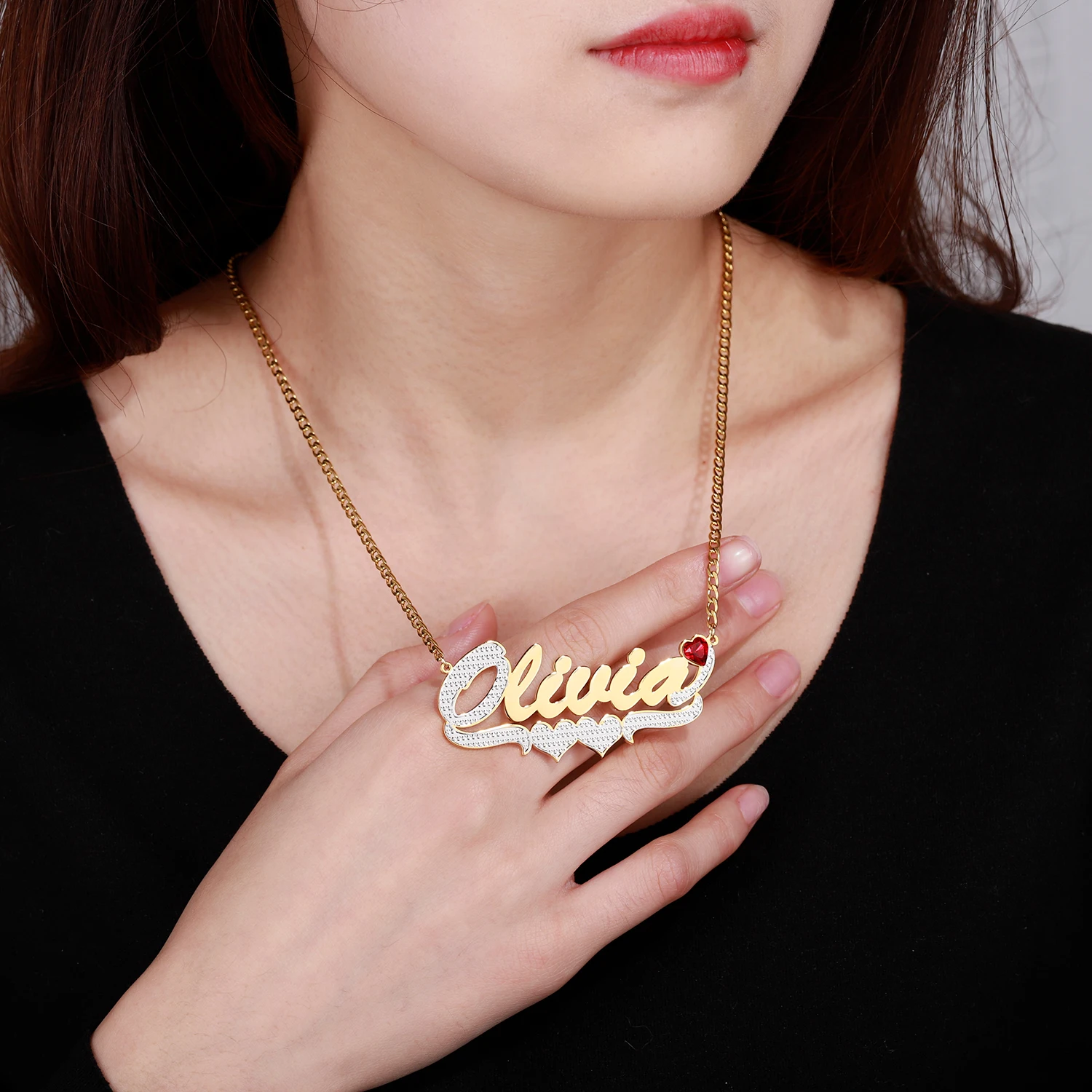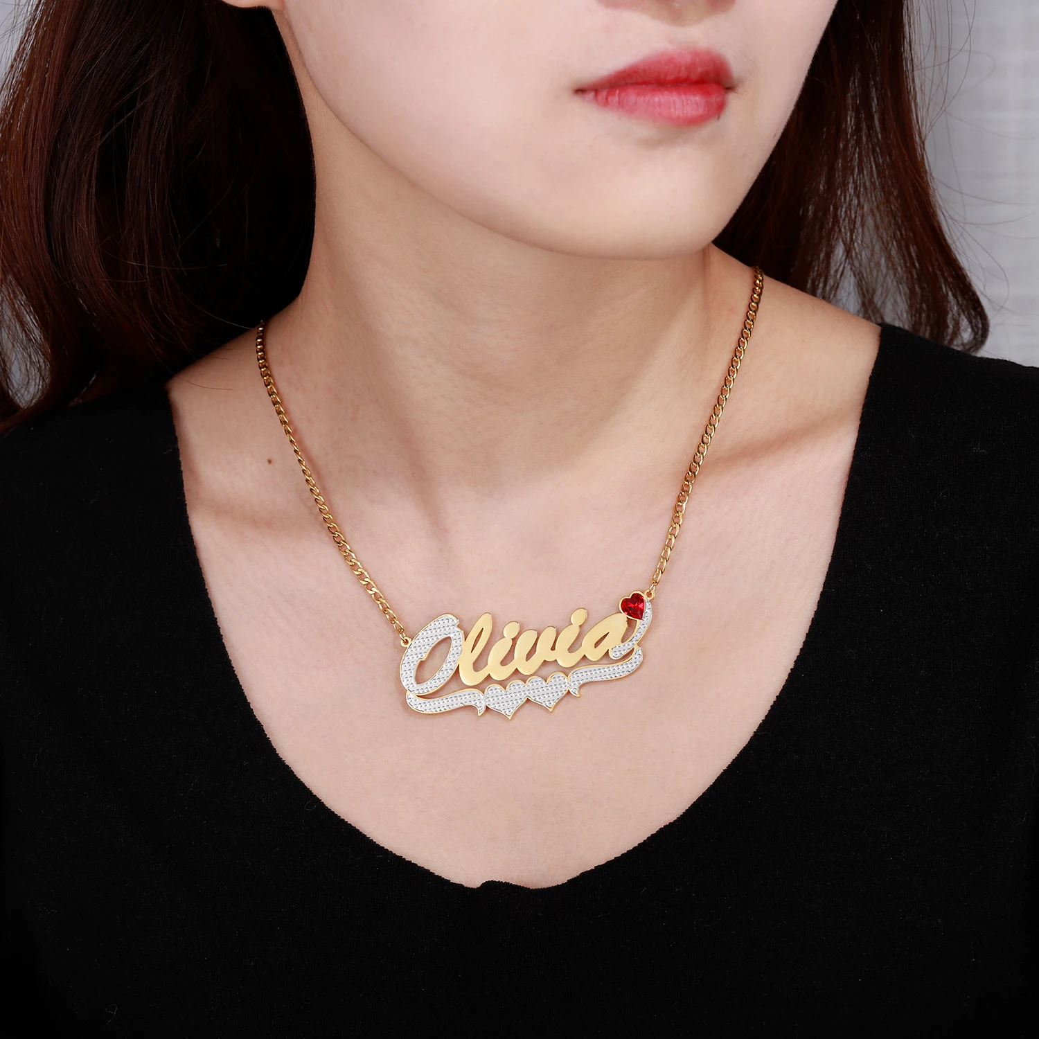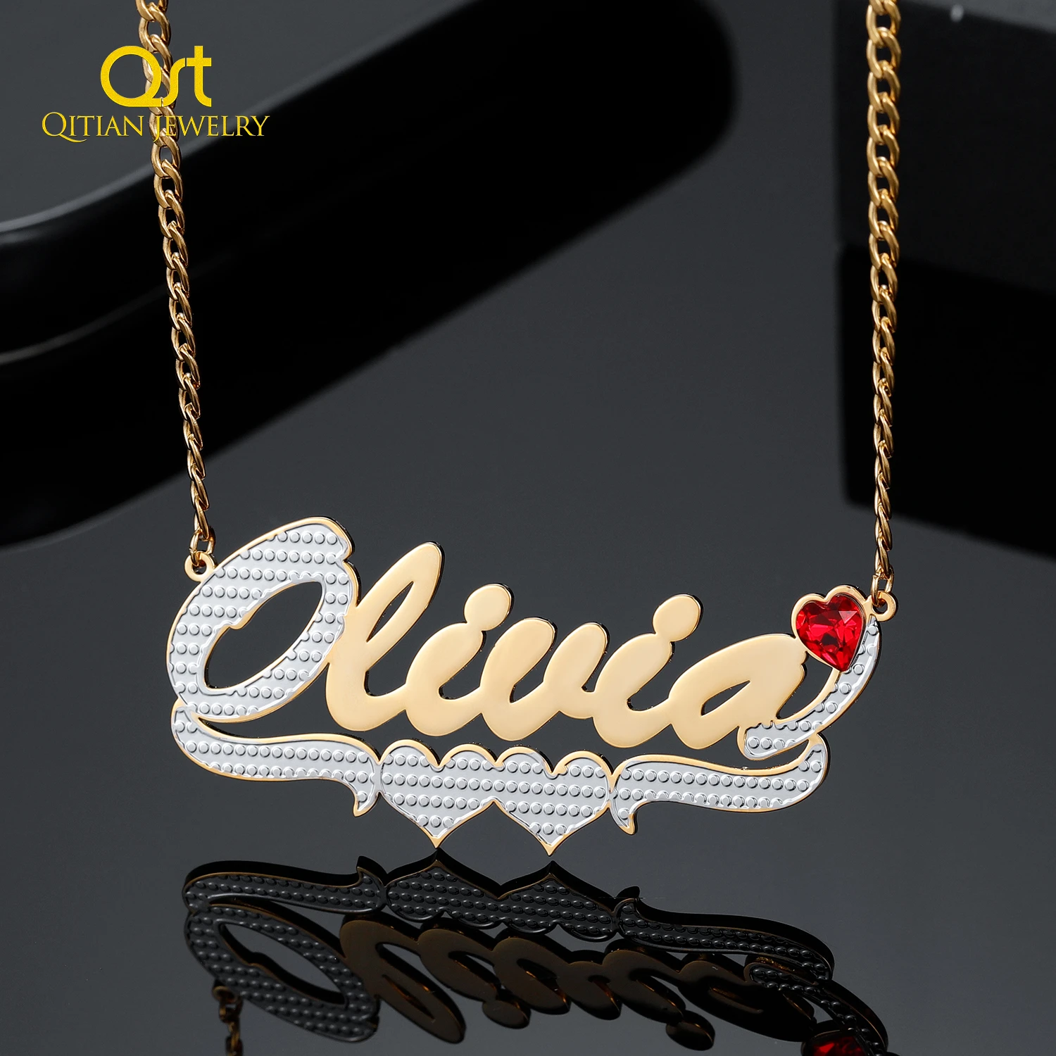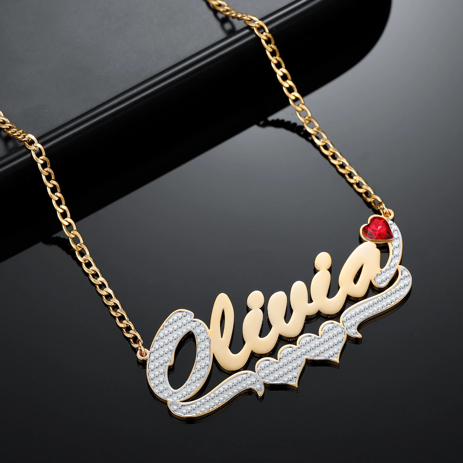 Индивидуальное ожерелье с именем в форме сердца, позолоченная двухц...