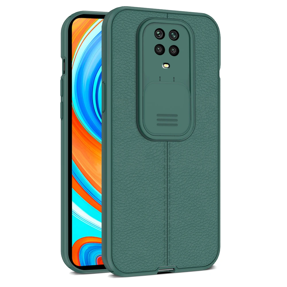 Кожаный чехол с текстурой для Xiaomi Redmi Note 9s Lens Push Pull P...