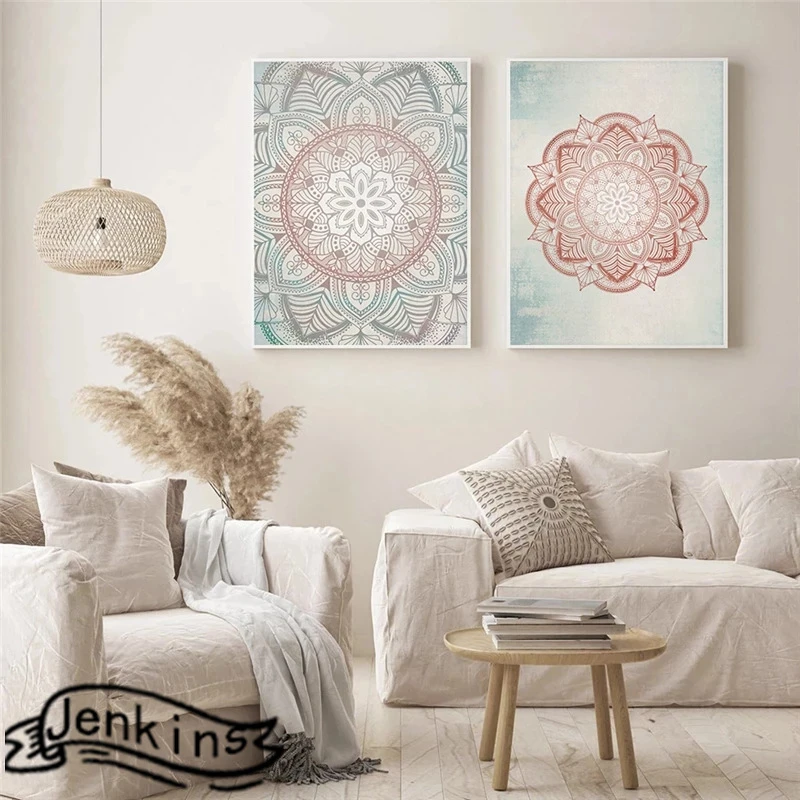 Богемный цветок Мандала Mindfulness Зен религия постер настенное искусство холст картины для йоги студия гостиная домашний декор