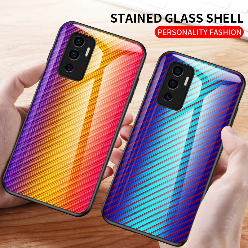 Чехлы для телефонов из закаленного стекла с градиентной окраской для Vivo V23E S10E Y15s X70 Pro Plus V21 V21E Y21 Y33s противоударный чехол-бампер