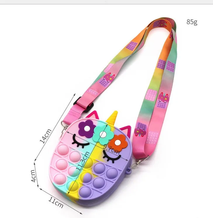 Модные игрушки-антистресс, игрушка с пузырьками, Радужный Единорог, кошелек для монет, женская сумочка из силикагеля, простая сумка через плечо с затемнением для девочек