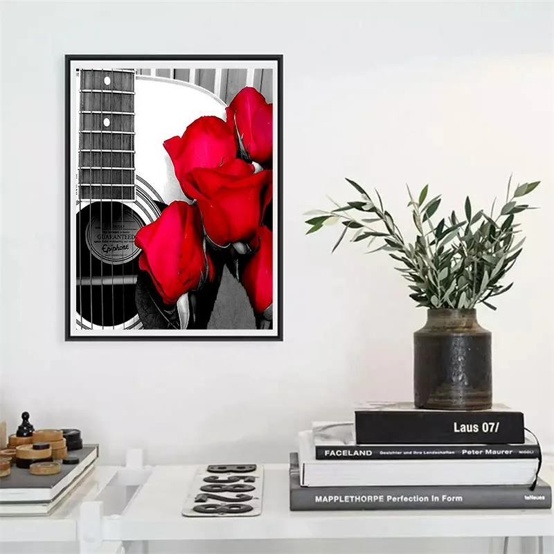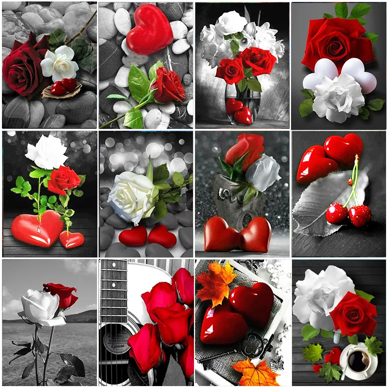 Алмазная 5D картина сделай сам, Крестик с красными и белыми цветами, розами, полная вышивка стразами, Стик для вышивки с любовным сердцем, искусственные поделки