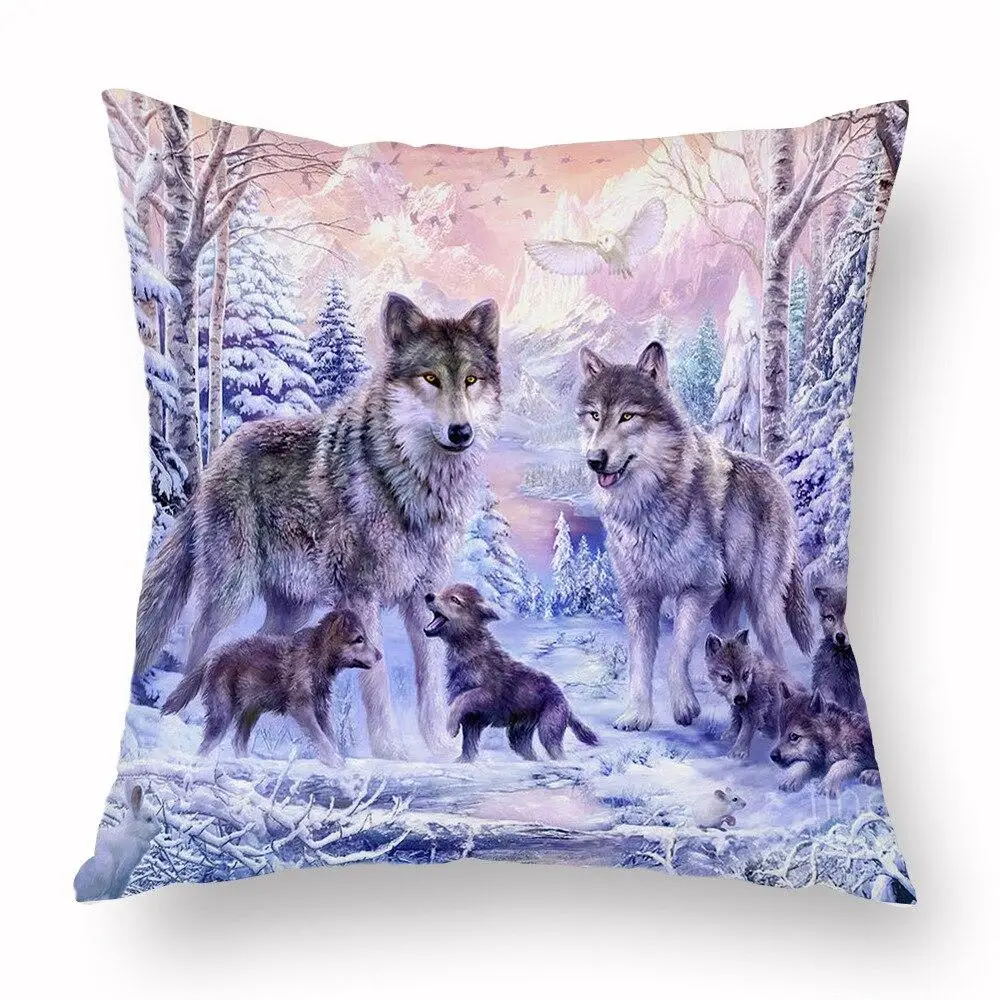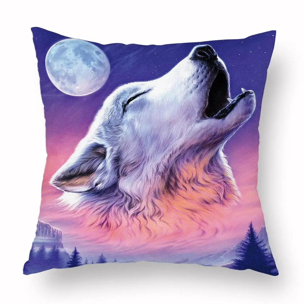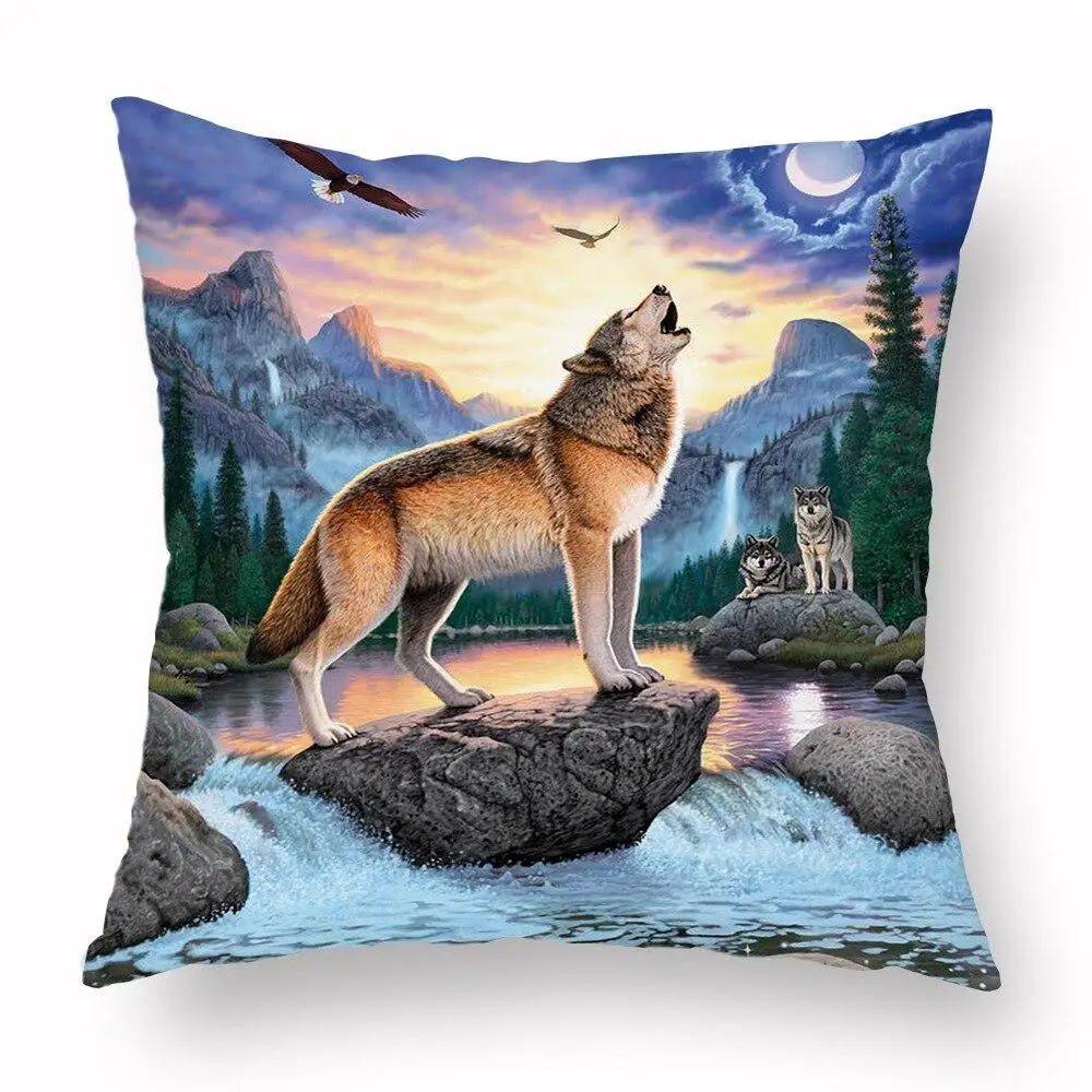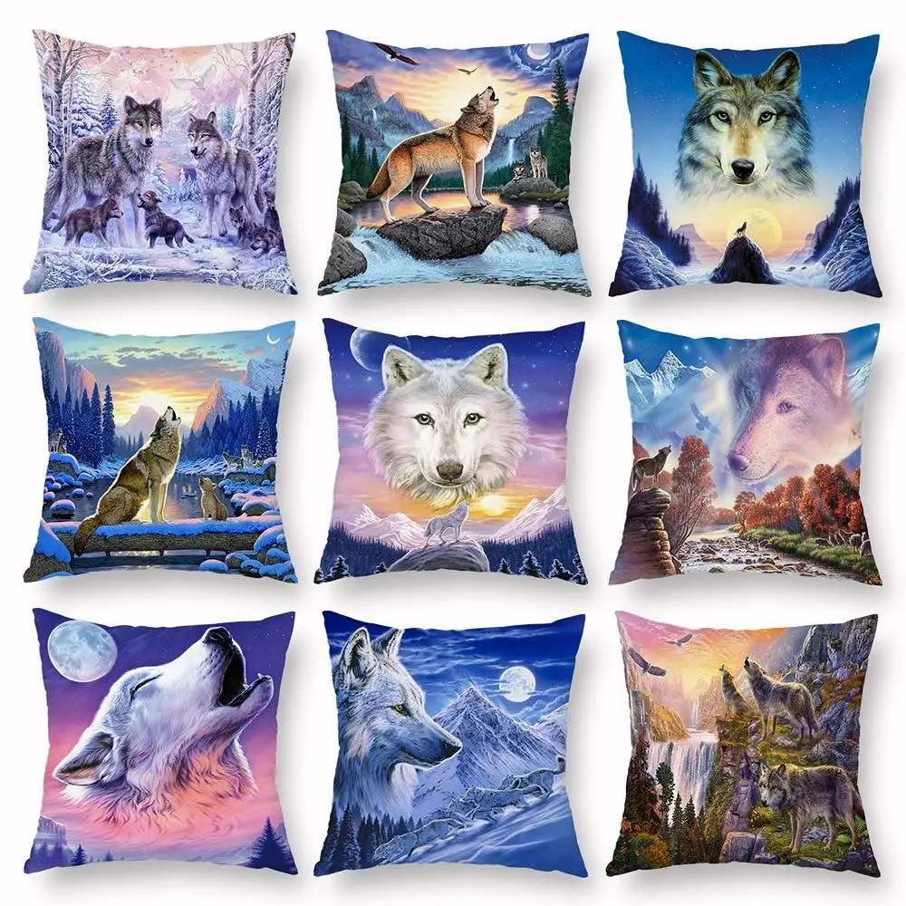 Односторонние синие дешевые чехлы с животными для подушек, винтажные декоративные подушки из полиэстера с волком, чехол для дивана, стула, домашний декор, модный