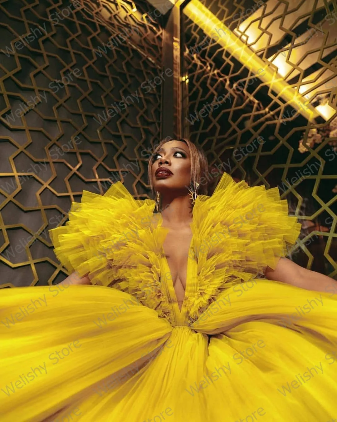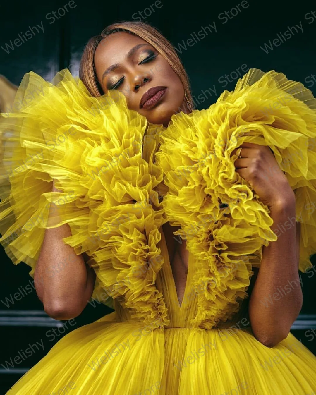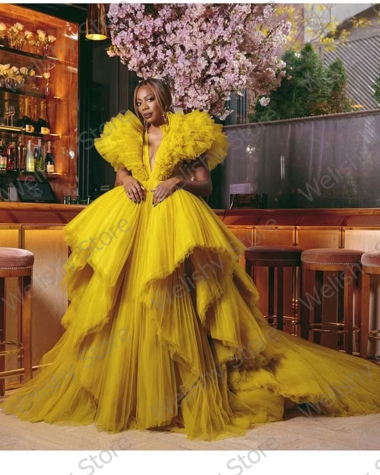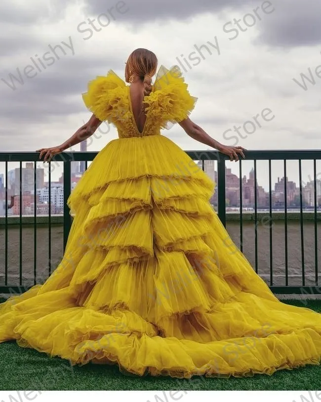 Женское вечернее платье с желтыми оборками, многослойное платье из ...