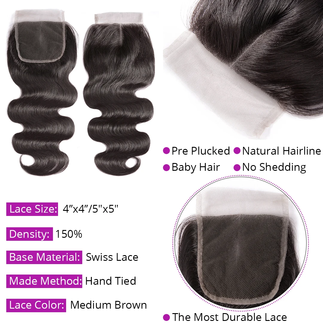 Прозрачная Кружевная Фронтальная застежка HD 5x5 13x4 13x6 недетектируемая волнистая кружевная застежка девственные искусственные волосы