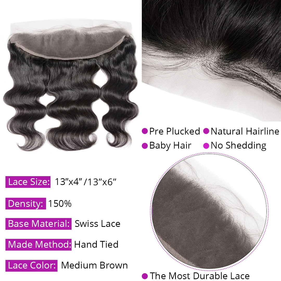 Неокрашенные волосы 13x4, фронтальные бразильские Прямые фронтальны...