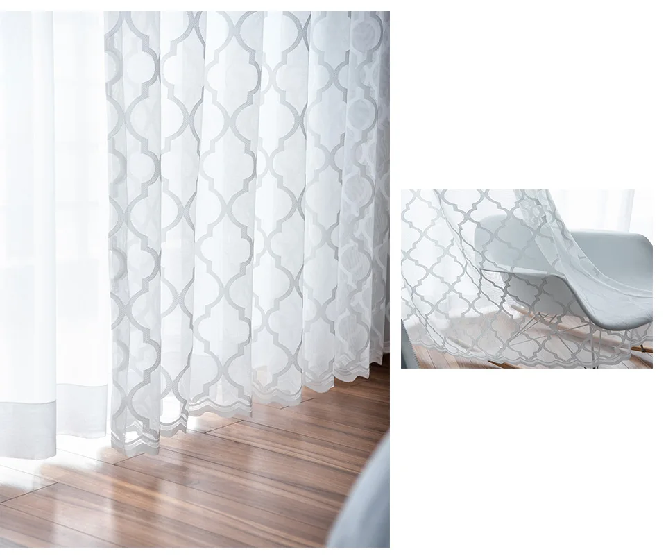Тюлевая занавеска с вышивкой в скандинавском стиле для гостиной, сп...