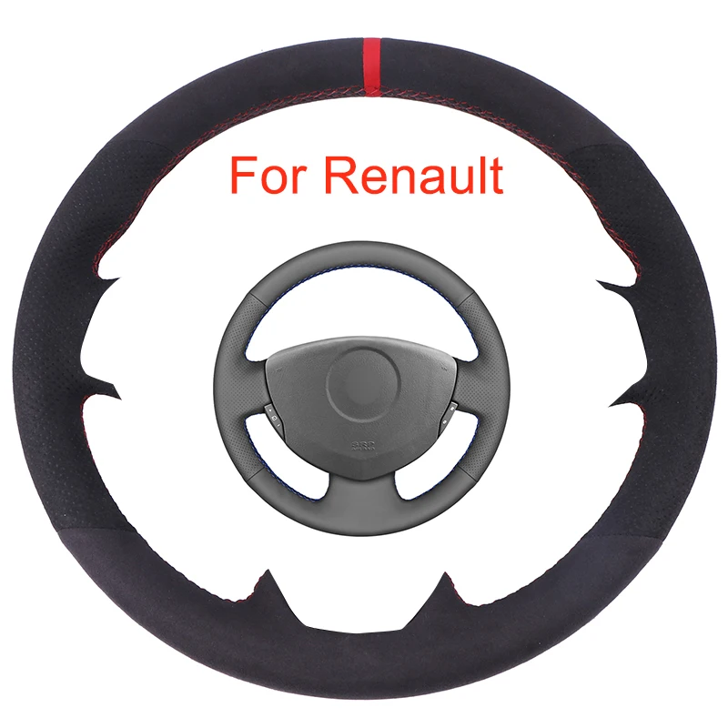 Чехол для рулевого колеса автомобиля на заказ, для Renault Clio 2 плоскости 2 Dacia Sandero, черная замшевая Кожаная оплетка сделай сам для рулевого колеса