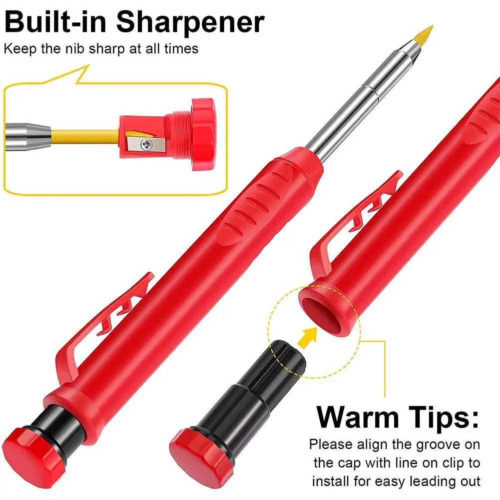 3. Механический карандаш: Карандаш Плотника не соскальзывает пальцы с карандаша и повторные следы уменьшат боль; Дизайн зажима ручки можно легко повесить на сумку, легко использовать и не легко потерять, повышение эффективности, подходит для строительства и масонов