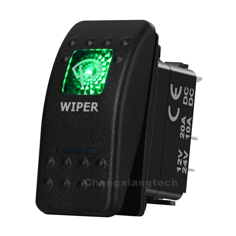 Двухпозиционный кулисный выключатель стеклоочистителя, 7-контактный ВКЛ.ВЫКЛ., зеленая светодиодная подсветка, 12 В, 20 А, DPDT, Carling Contura