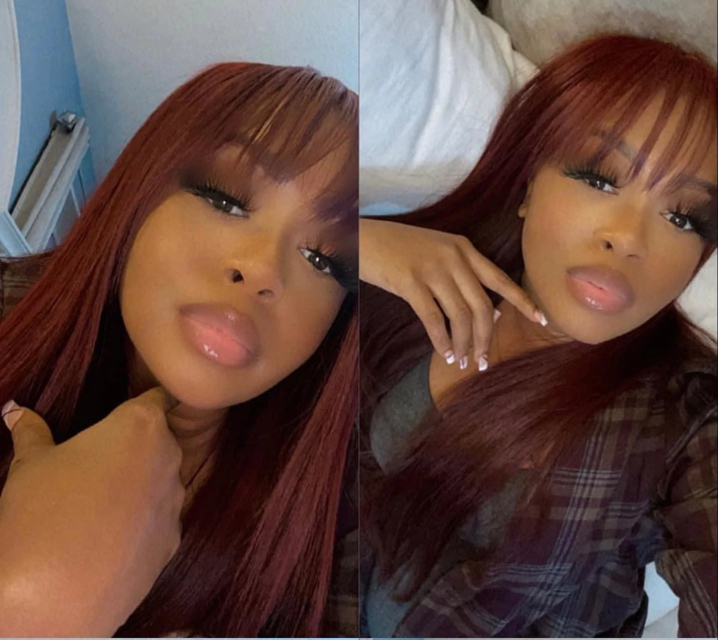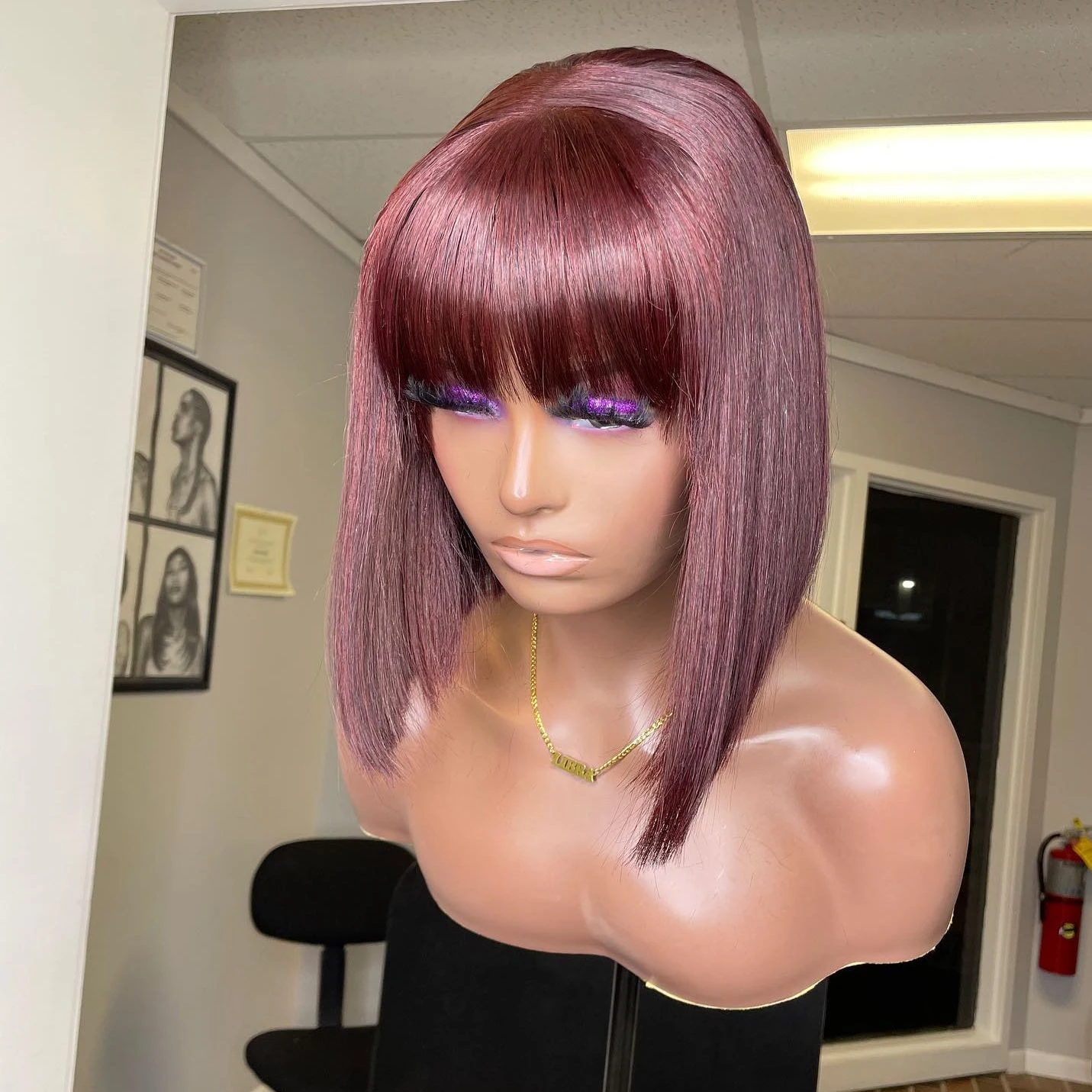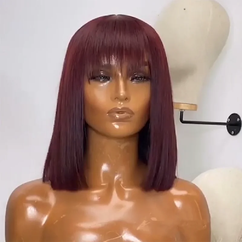 99J красный бордовый короткий парик из человеческих волос с бахромой для женщин, прямые волосы без повреждений, парики с челкой, темно-коричневые парики балаяж