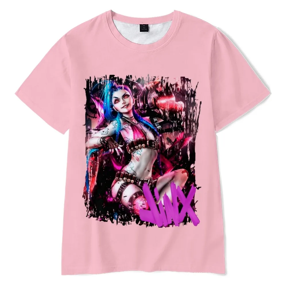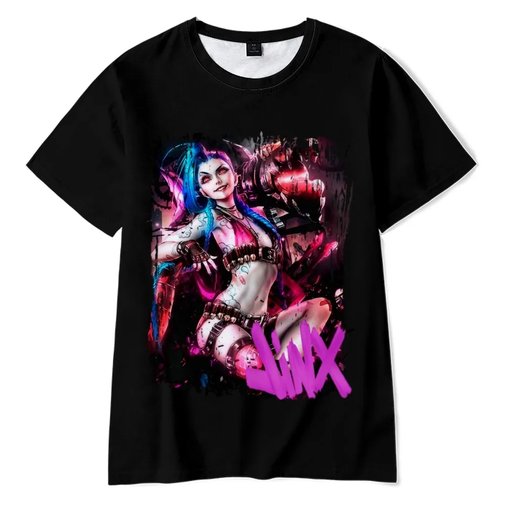 Футболка Arcane Jinx коллекция 2021 года, футболка для ТВ-сериала LOL Game с круглым вырезом для мужчин и женщин, многоцветная Футболка с коротким рукавом в стиле Харадзюку, уличная одежда, модная одежда