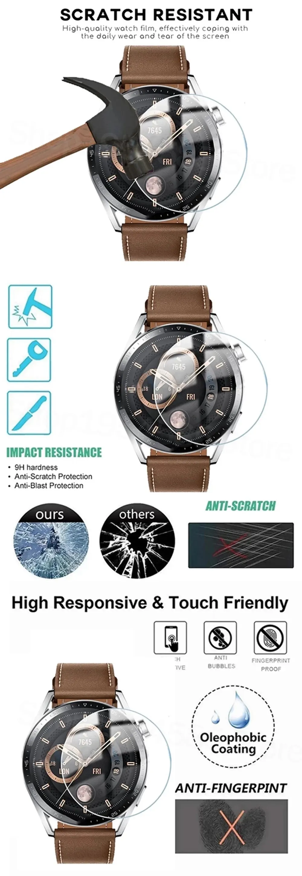 Закаленная пленка для смарт-часов Huawei Watch GT3 GT2 GT 3 2 46 мм с защитой от царапин, водонепроницаемое защитное покрытие для экрана, защитный чехол