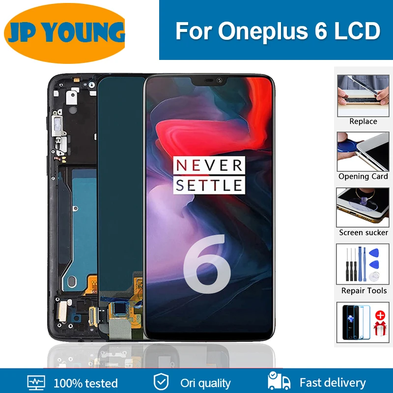 100% протестированный ЖК-дисплей 6,28 "Oled, замена для Oneplus 6 A6000, ЖК-экран для 1 + 6, сенсорный экран с рамкой и дигитайзером в сборе