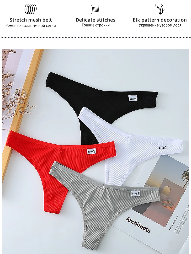 3 предмета в комплекте женские хлопковые стринги трусы с низкой тал...