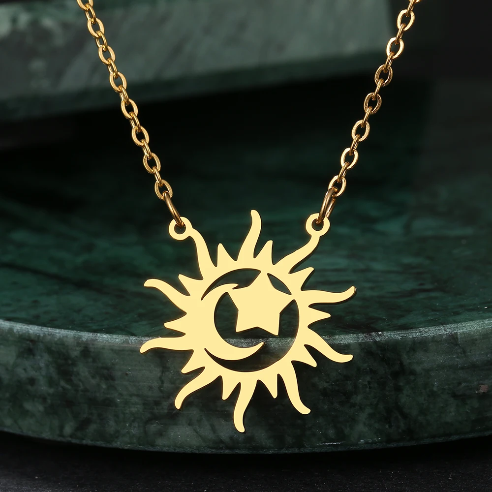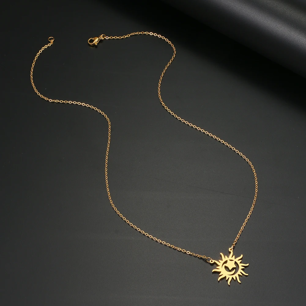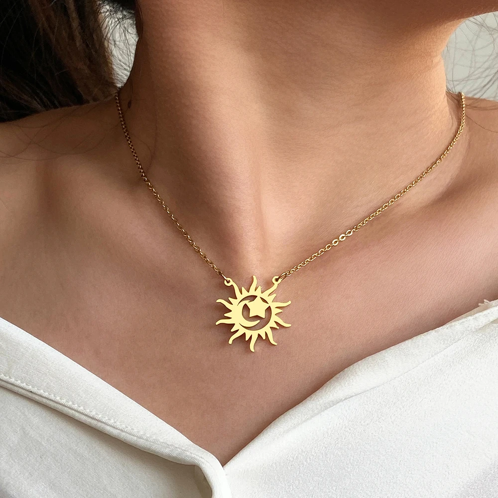 Ожерелья из нержавеющей стали, цепочка с подвеской в виде блестящего солнца, Луны, пентаграммы, модное ожерелье для женщин, ювелирные изделия, подарки для мужчин и женщин, цельный кусок