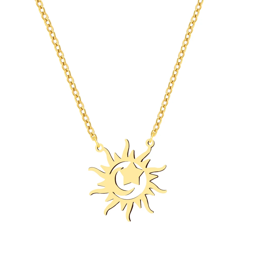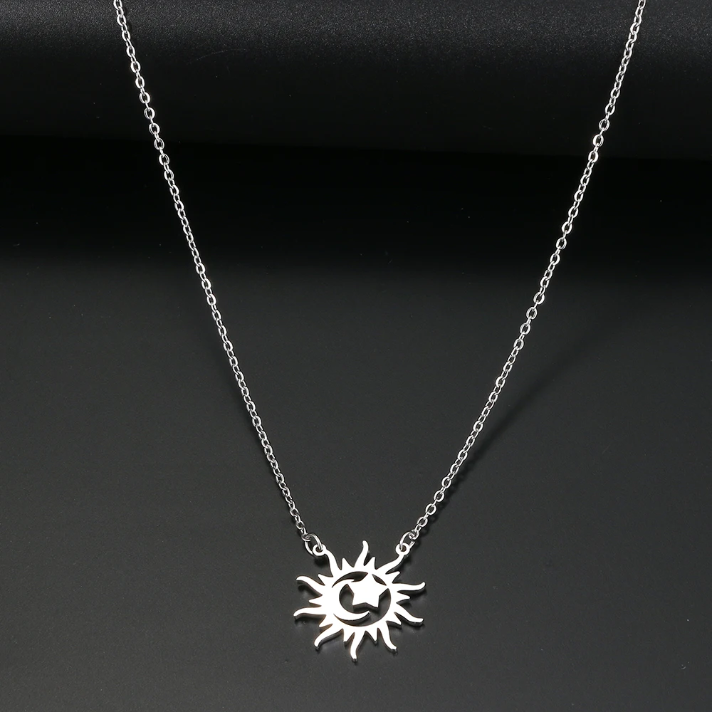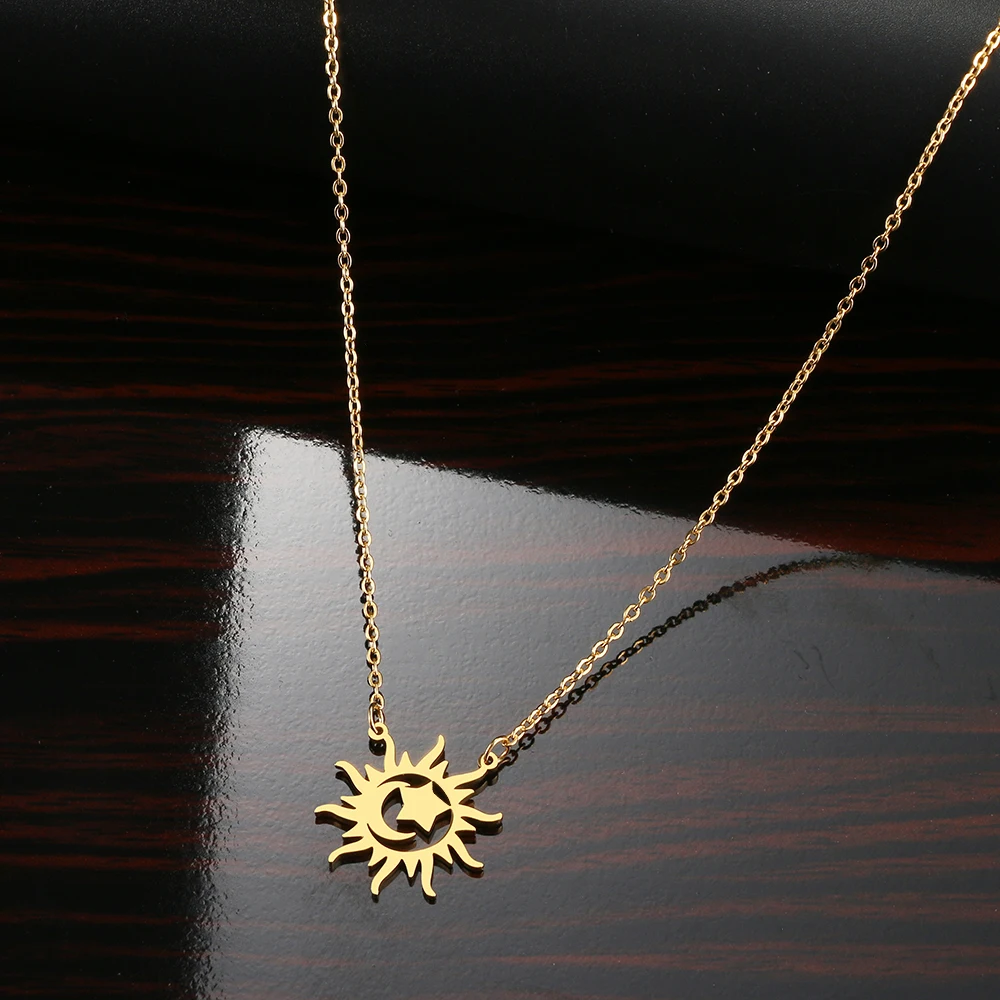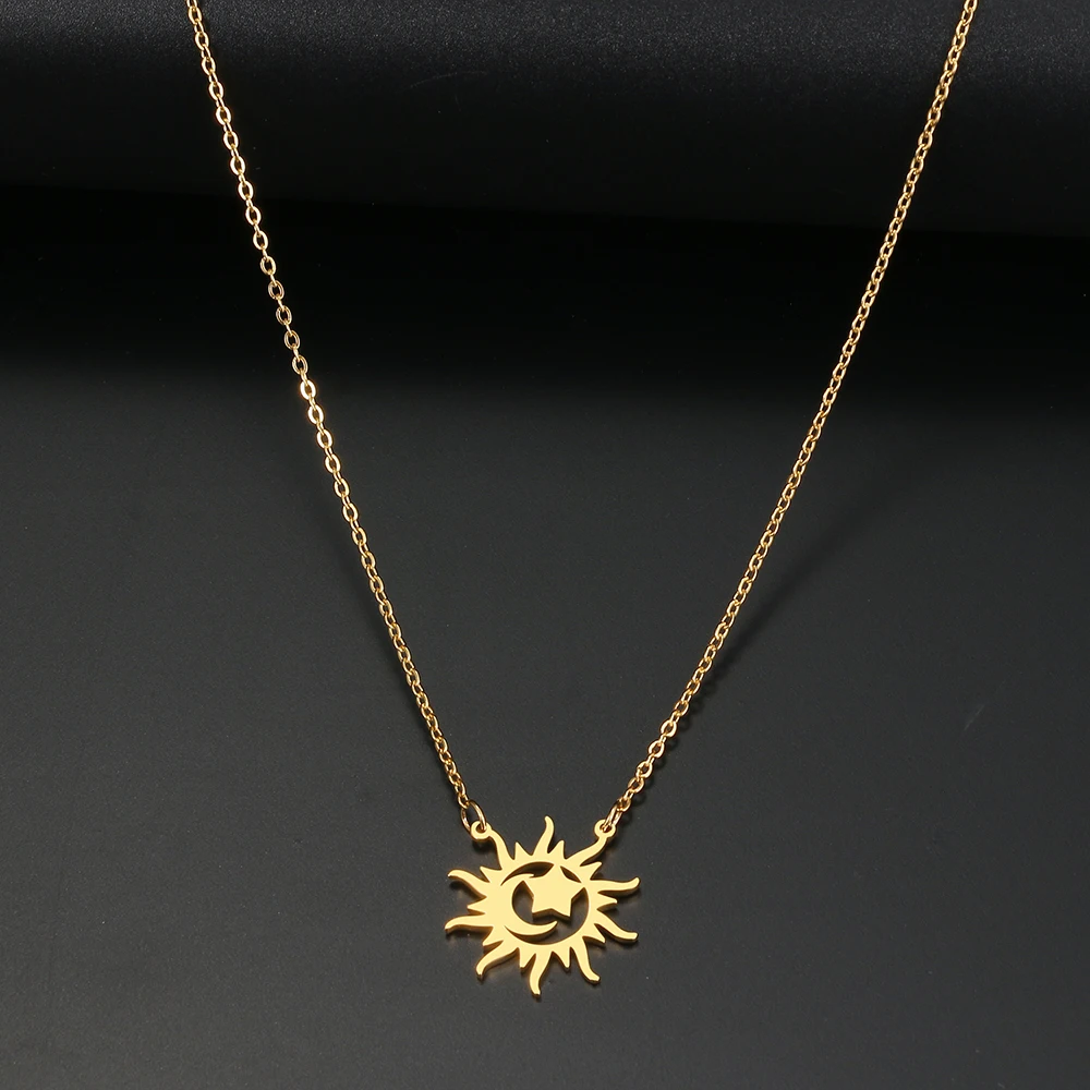 Ожерелья из нержавеющей стали, цепочка с подвеской в виде блестящего солнца, Луны, пентаграммы, модное ожерелье для женщин, ювелирные изделия, подарки для мужчин и женщин, цельный кусок