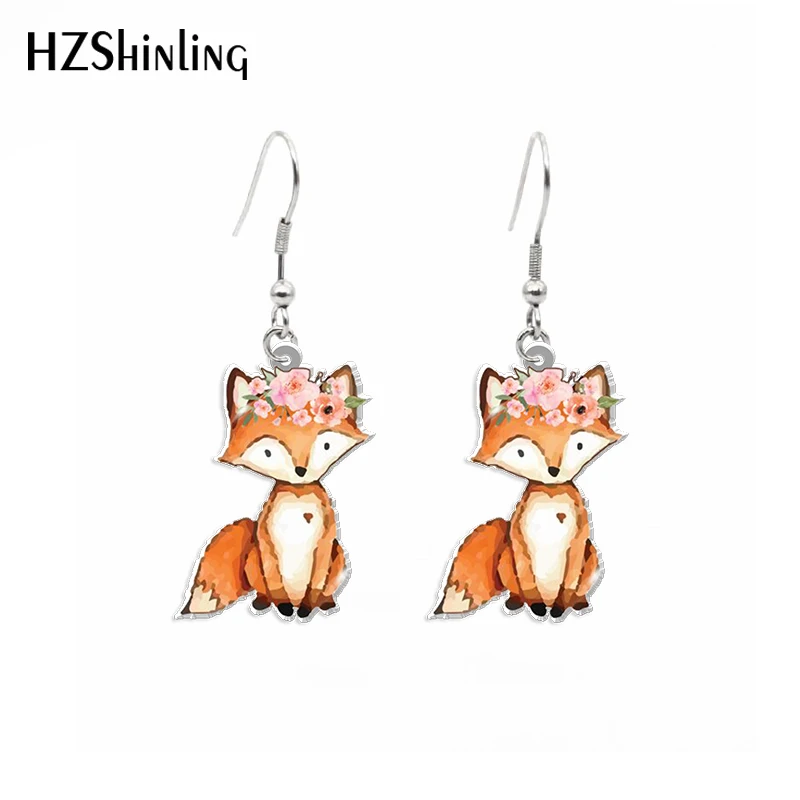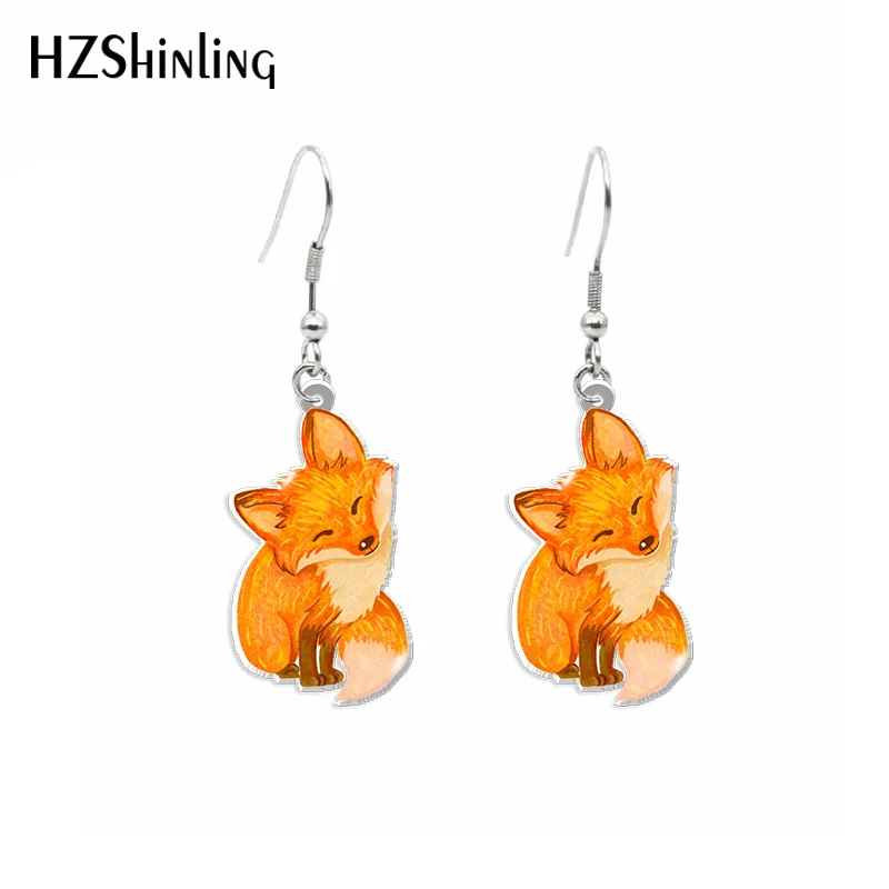 Новинка 2021, висячие серьги с изображением Красной лисы, акриловые серьги-Крючки с изображением леса и животных, серьги для подарка друзьям