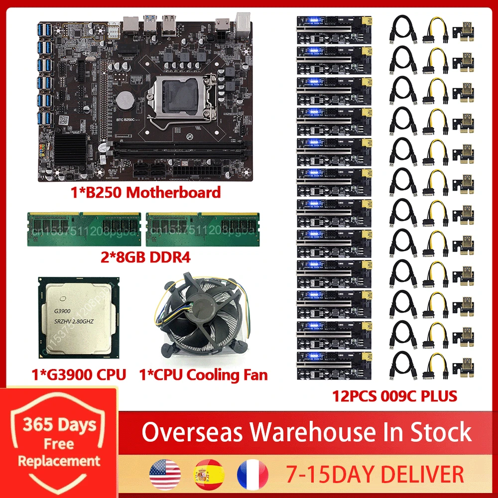 Материнская плата B250C для майнинга, LGA 1151 комплект, 12 x USB 3,0 для PCI-E 16x 8x 1x VER009C010-X переходник для 8 10 12 GPU, Майнер для биткоинов icon star icon star icon star icon star icon star