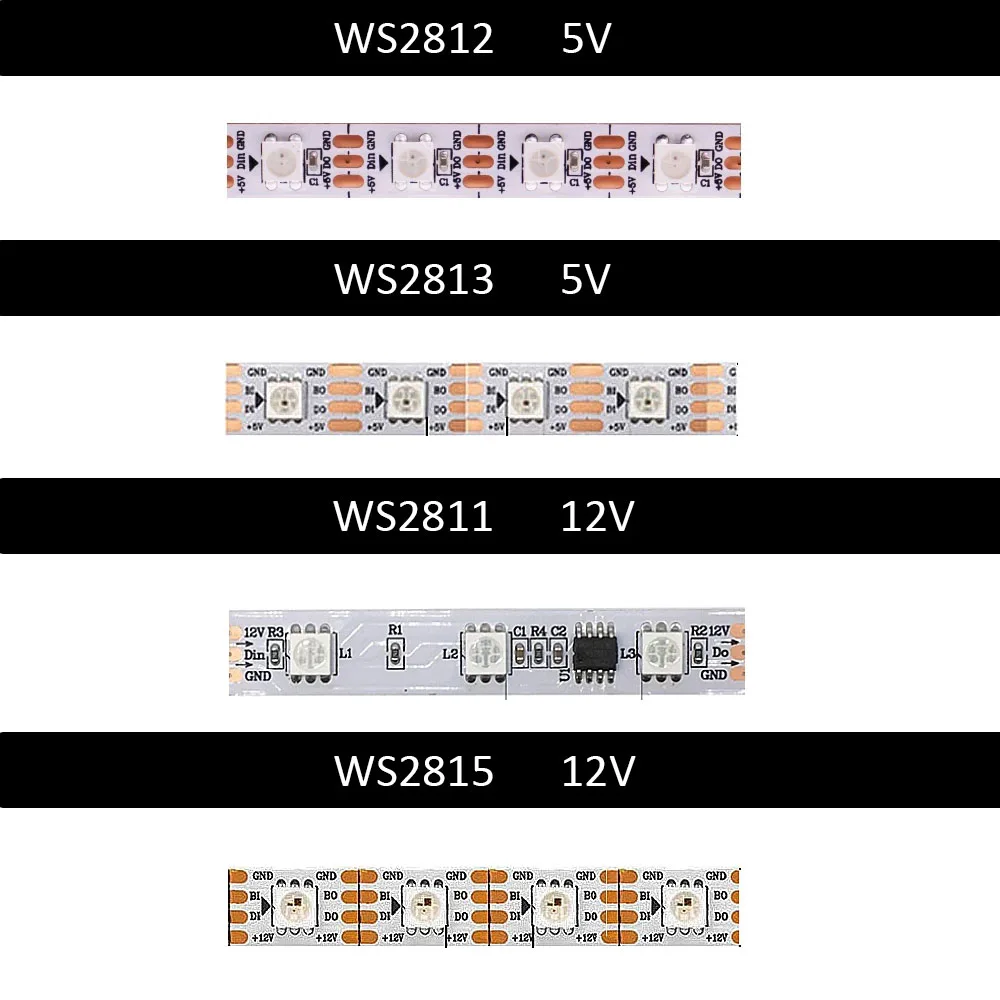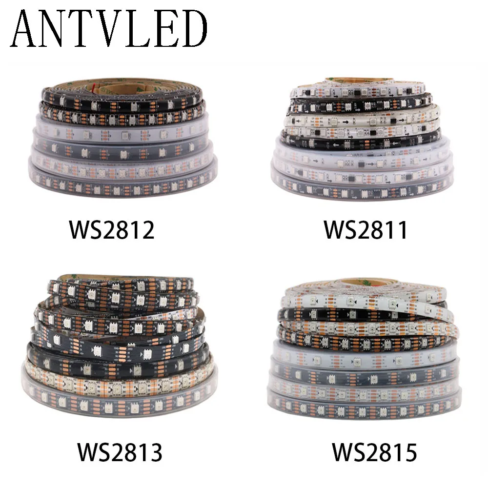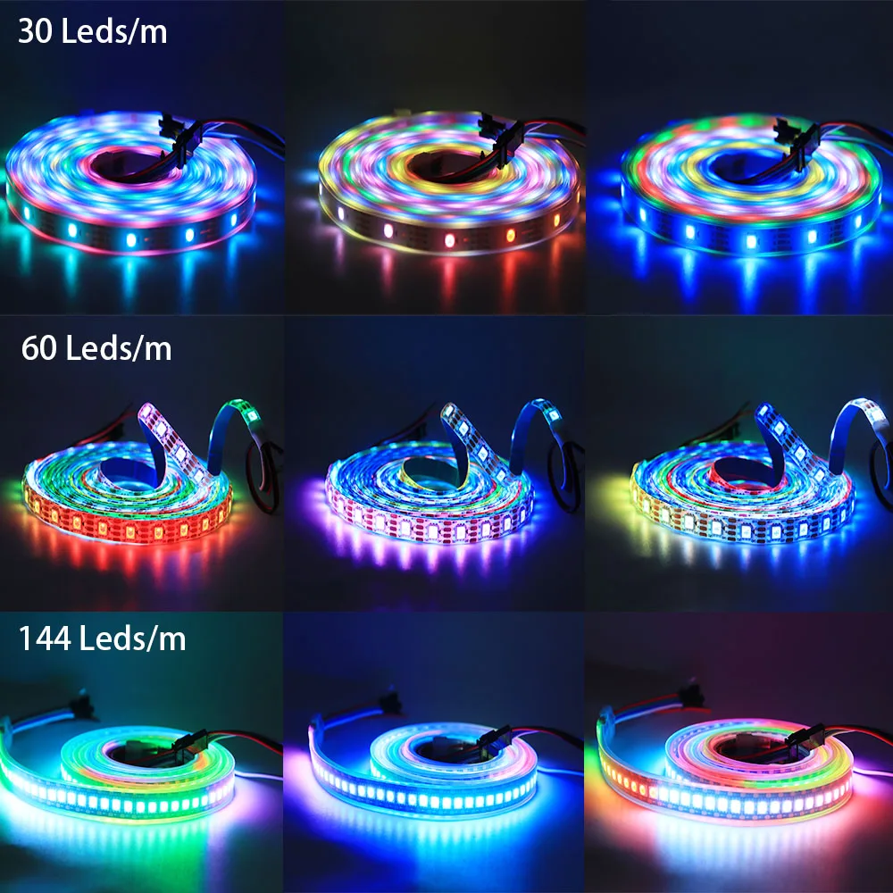 Светодиодная RGB лента WS2812B WS2811 WS2813 WS2815, индивидуально Адресуемая 3060144 пикселейсветодиодовм, Светодиодная лента IP306567, 5 в постоянного тока, 12 В постоянного тока, 1-5 м