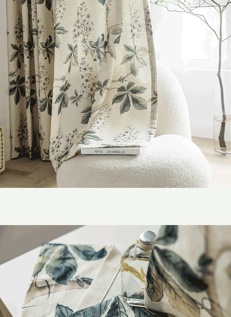 Скандинавские хлопковые льняные шторы для гостиной, цветочные драпи...