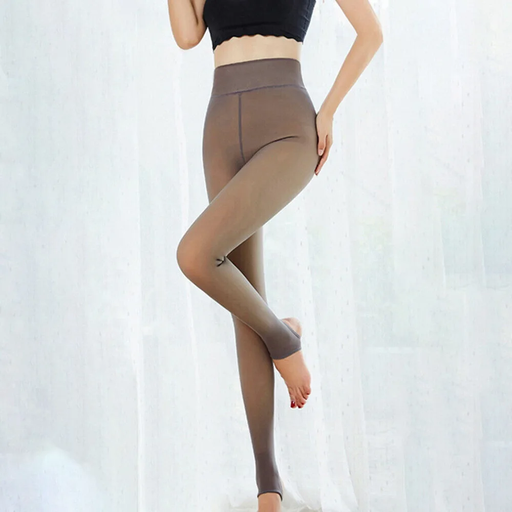 Женские полупрозрачные теплые флисовые Колготки с высокой талией
