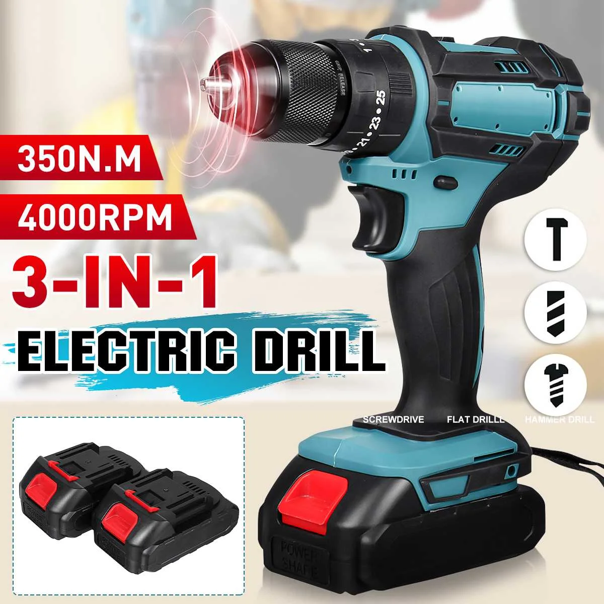 3 в 1 электрическая дрель с крутящим моментом нм, 13 мм, 10 мм, плоский молоток для ударного бурения, электрическая отвертка, инструменты, подходят для батареи Makita 18 в