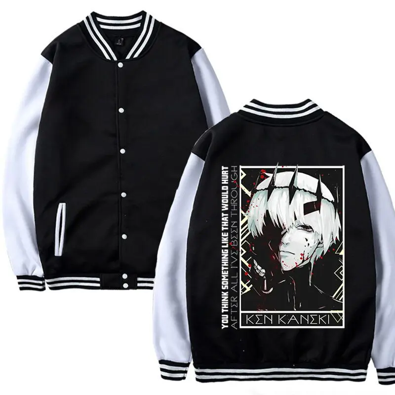 Токийский Гуль для мужчин и женщин, мужские бейсбольные куртки, куртка для мужчин и женщин, Токийский Гуль Кен канеки, аниме, черная куртка для колледжа, мужская верхняя одежда в стиле Харадзюку