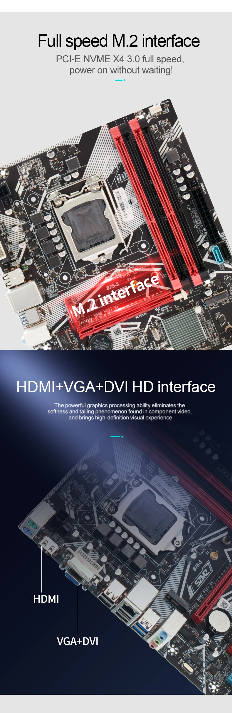Комплект материнской платы B75 для игрового ПК, LGA 1155 E3 1220 3,1 ГГц процессор USB3.0 SATA3.0 M.2 интерфейс 1155, комплект для сборки игроков