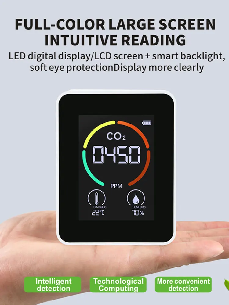 Цифровой измеритель CO2 5 в 1, тестер с цифровым датчиком температуры и влажности, Многофункциональный Датчик качества воздуха, детектор угарного газа и углекислого газа