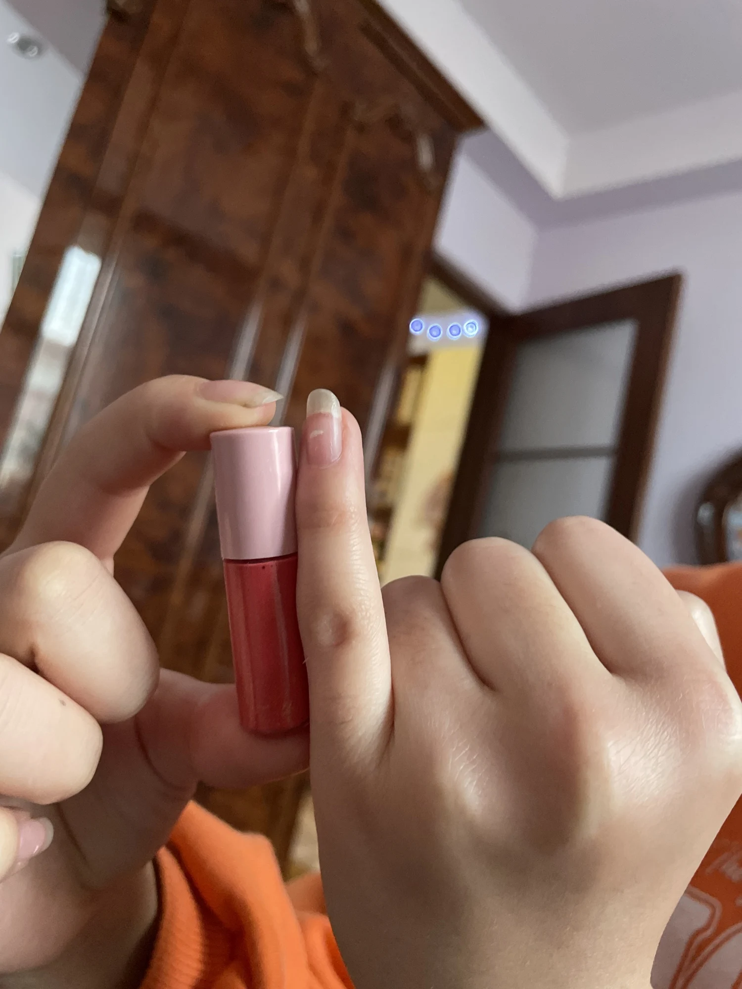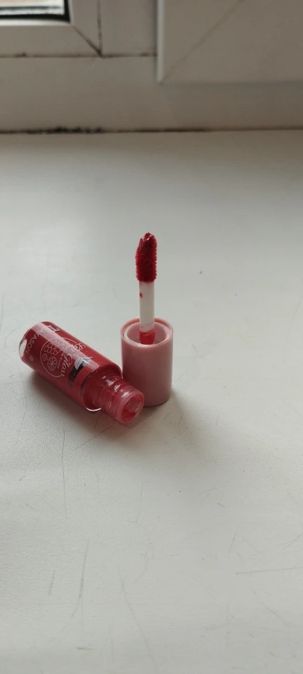 помада не водостойкая, ложится не ровно, неприятный запах, размером с мизинец, на губах смотрится не так как на фото, он почти незаметен и после него ещё губы щипет
