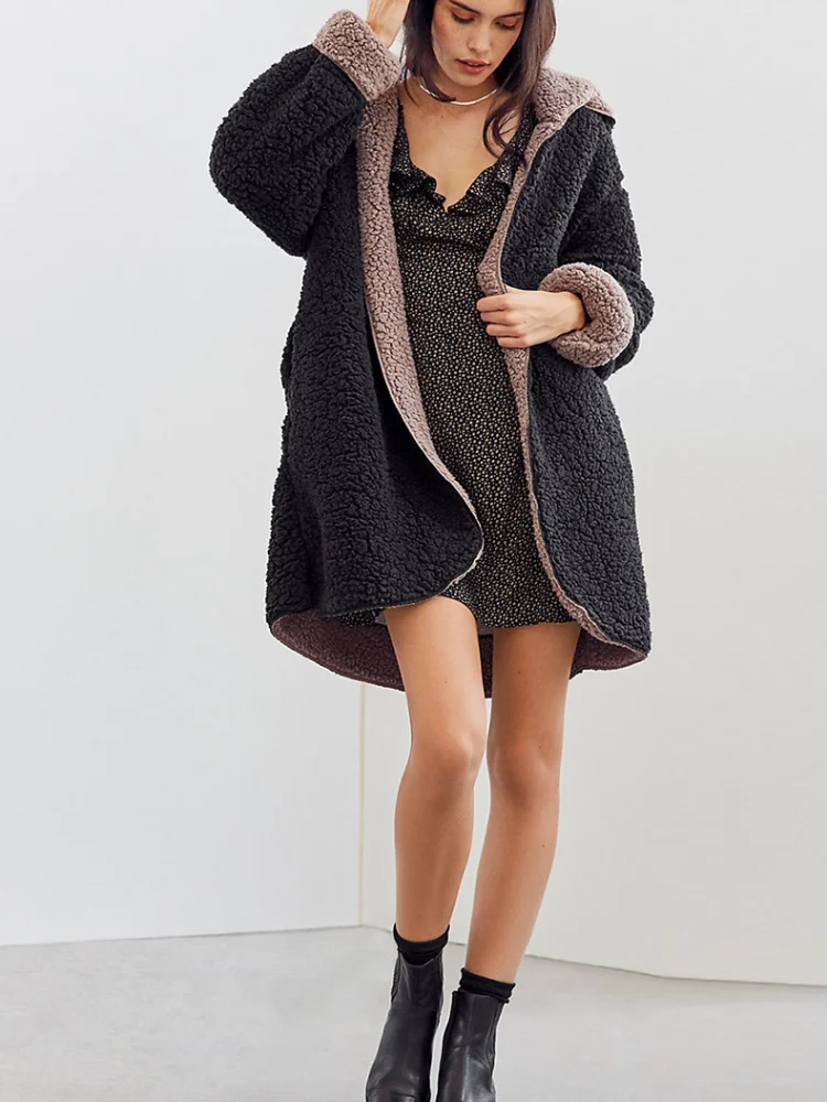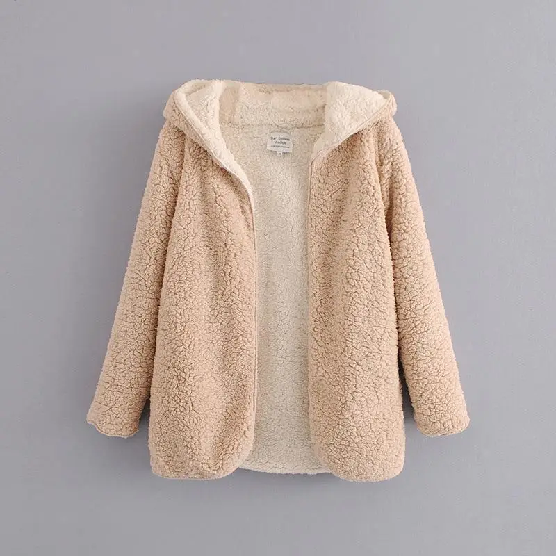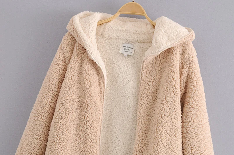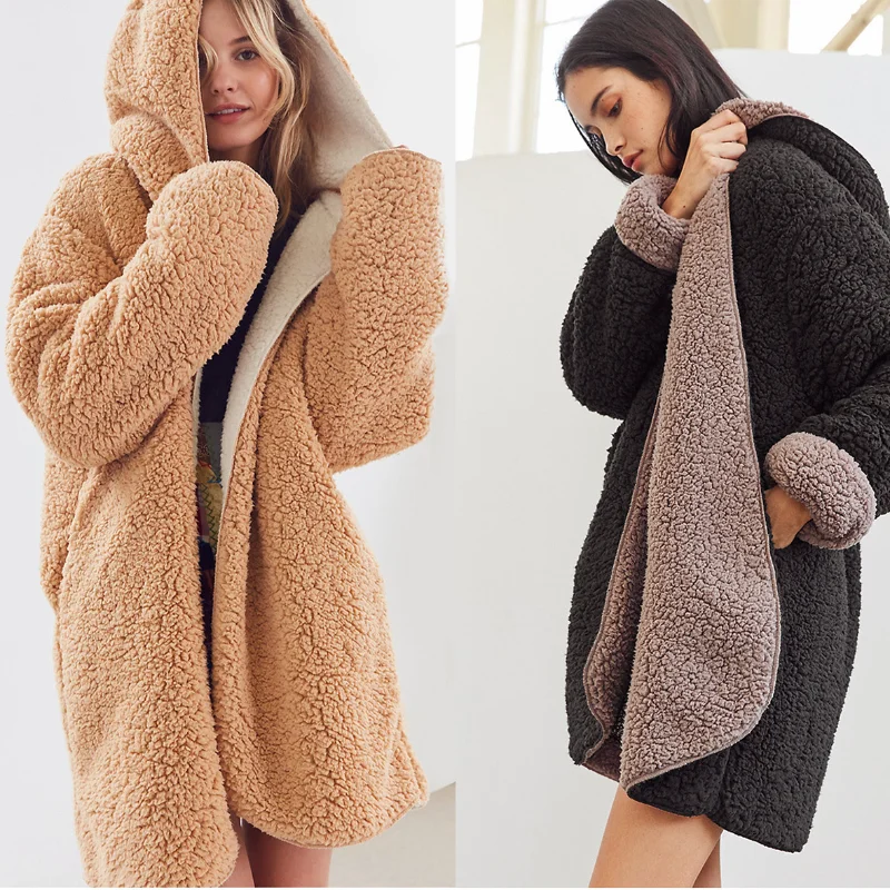 Новинка, Женская куртка с подкладкой из искусственной шерсти, модные длинные пальто на весну и осень 2019, Женская Двусторонняя одежда с капюшоном, теплая верхняя одежда, женские пальто